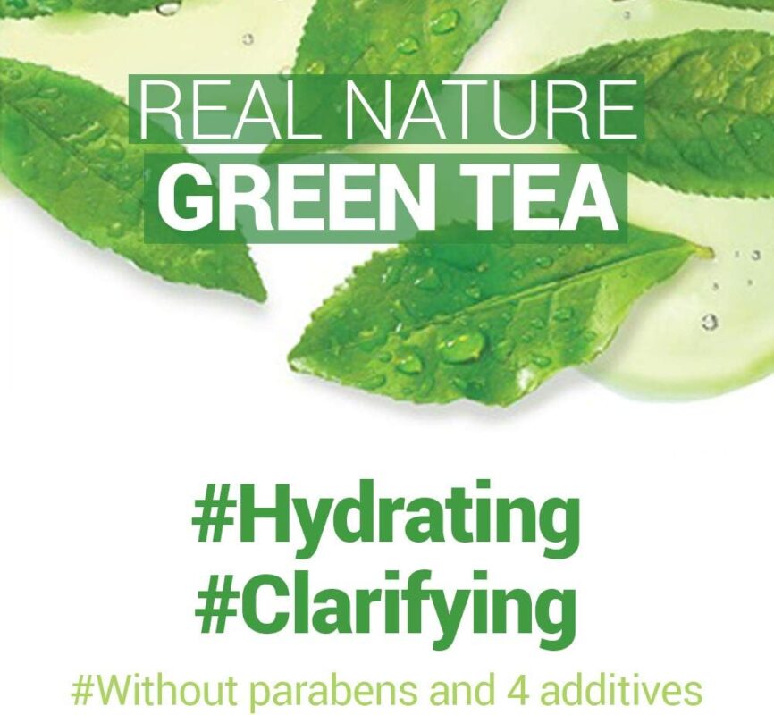 THE FACE SHOP Real Nature Face Mask | Hydrates & Clarifies Skin by Infusing Moisture to Skin | K Beauty Facial Skincare for Oily & Dry Skin | Green Tea,K-Beauty