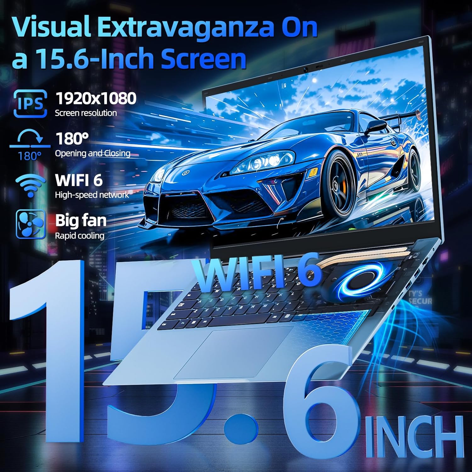 Immersive Display and Protection: The 15.6 Inch FHD IPS (1920×1080) Anti-Glare Display with an 85% screen-to-body ratio delivers vivid, wide-angle visuals. This traditional laptop computers design also features a hidden camera and 180°Viewing. It excels from academic tasks to creative projects, making it a versatile student laptop. Naclud Laptop comes with 1 year Protection and 24/7 customer instant help