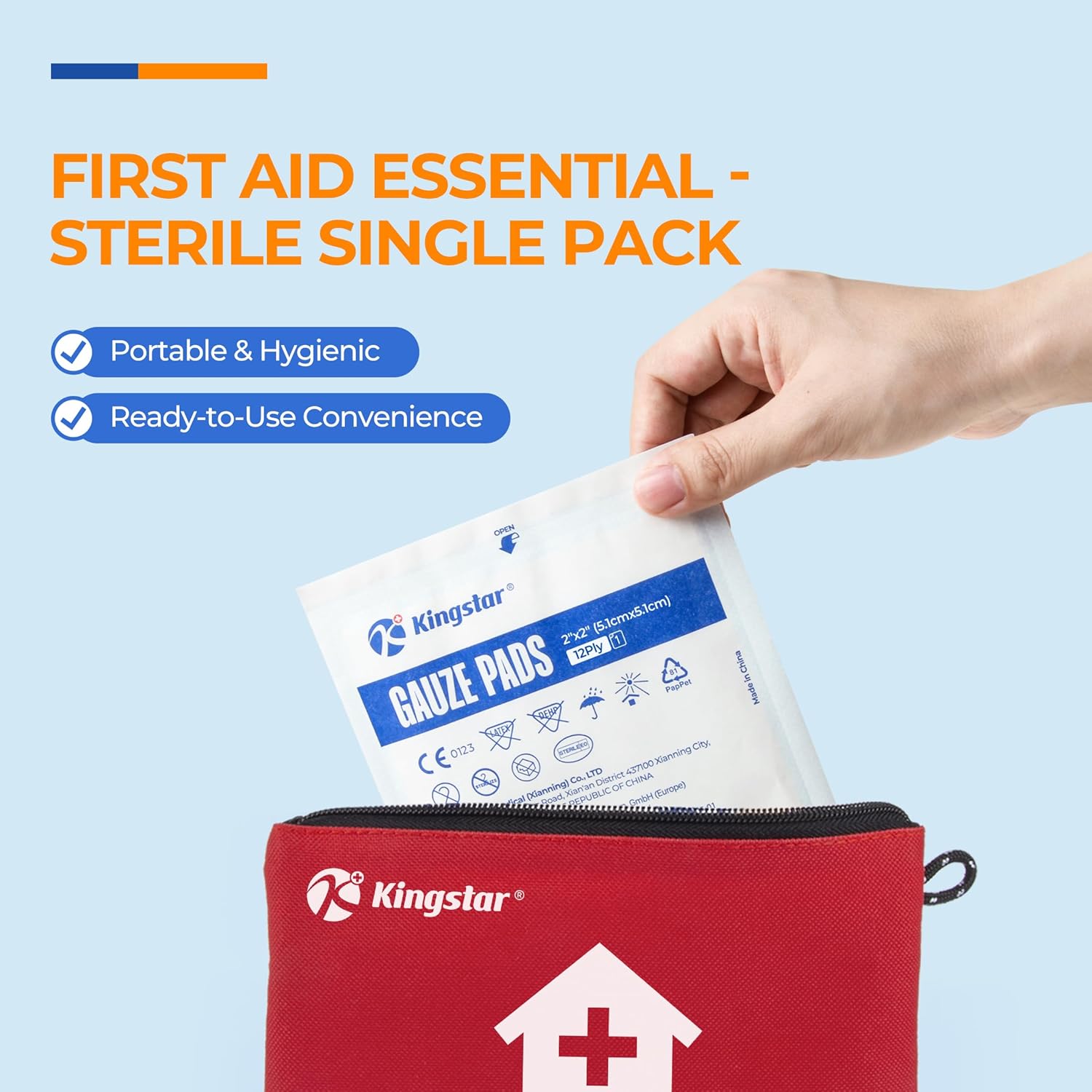 Individual Packaging: Each gauze pad is sterilized and individually packaged to prevent dust, foreign matter and microbes from entering, ready for immediate use to avoid cross-contamination. A single pad can be carried on your person or stored in a first aid kit for emergency use