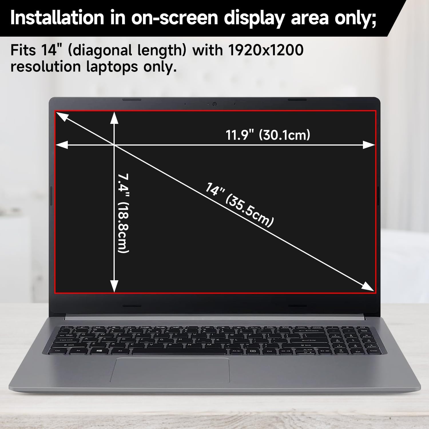 【Compatibility】This laptop privacy screen 14 inch is specially designed to fit all brands of 14-inch laptops with a 16:10 aspect ratio (Not Fit for a 16:9 resolution laptop. If you’re not sure, contact us to confirm it for you!). The diagonal measurement of the screen is 14 inches (measured viewable display area diagonally, corner to corner without the frame), and the filter size is 11.85 inches (301mm) x 7.4 inches (188mm). You’ll enjoy a perfect fit for your laptop screen.