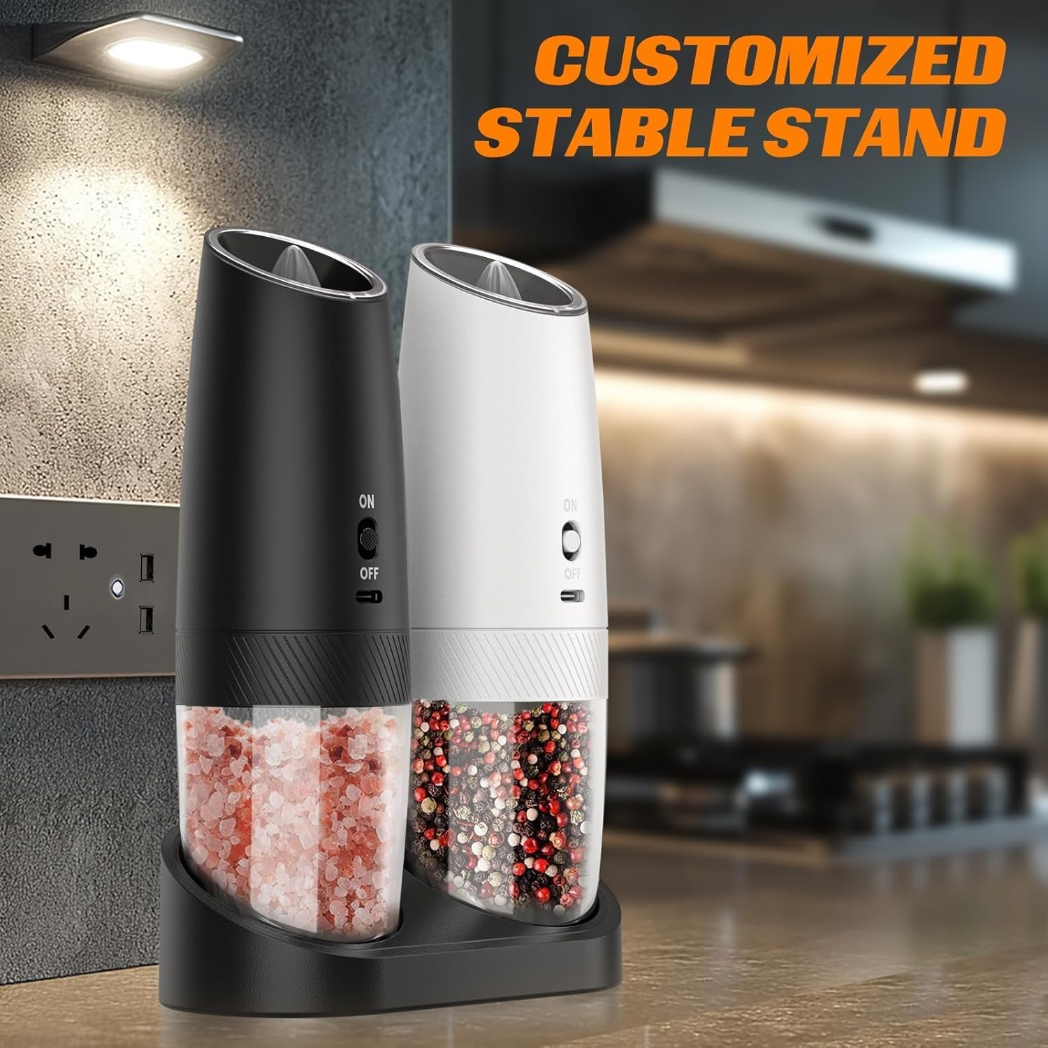 2 Electric Grinder Set for Salt and Pepper, Gravity Sensor Adjustable External Coarseness to Fine Automatic Grinding Kit with Light for Mother Father Friend and Chef Kitchen Cooking Gadgets Gifts