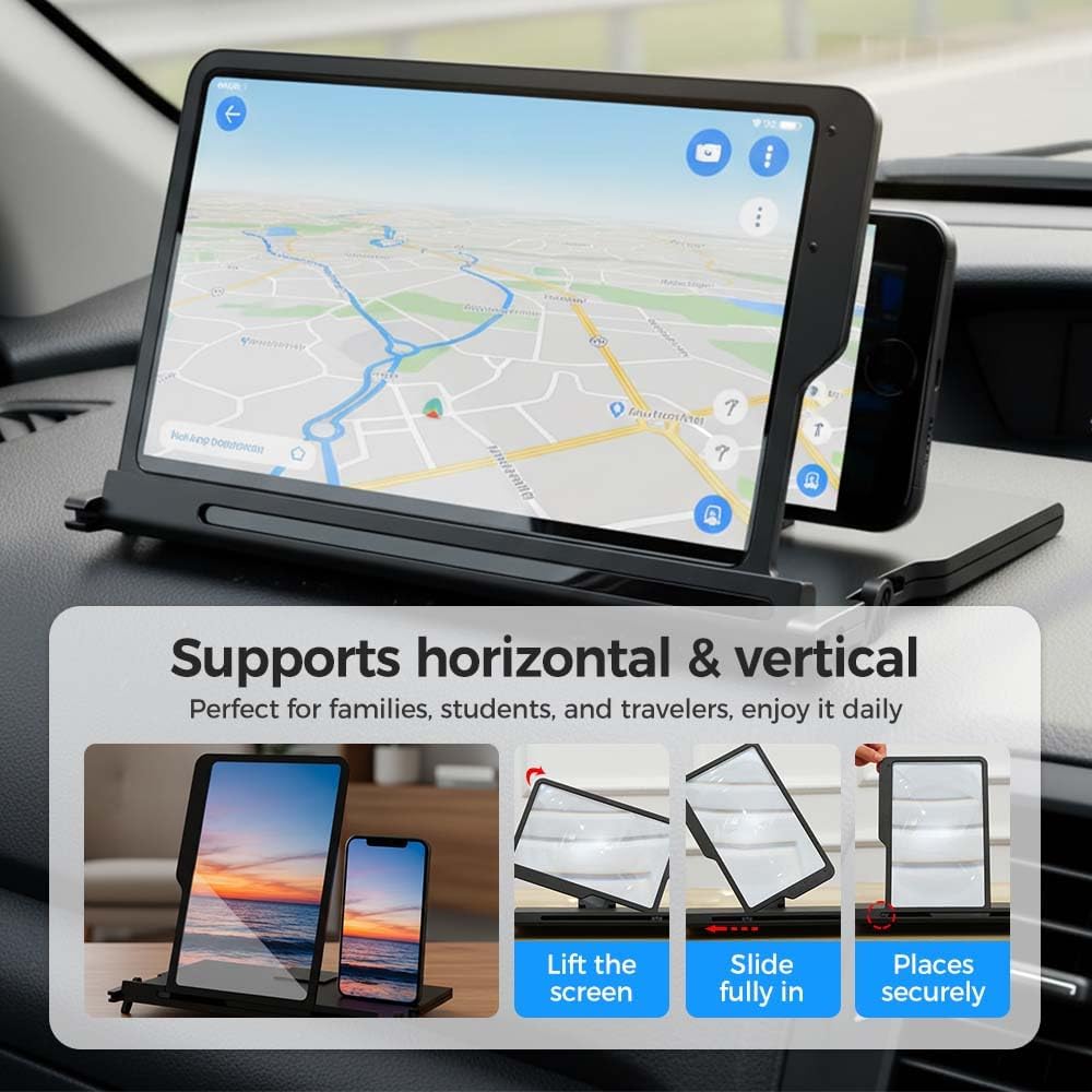 2026 New Portable Mobile Phone Screen Magnifier, Upgrade Foldable Mobile Phone Holder with Screen Amplifier, 3D HD Magnifying Projector Screen for Movies Videos Gaming (1)