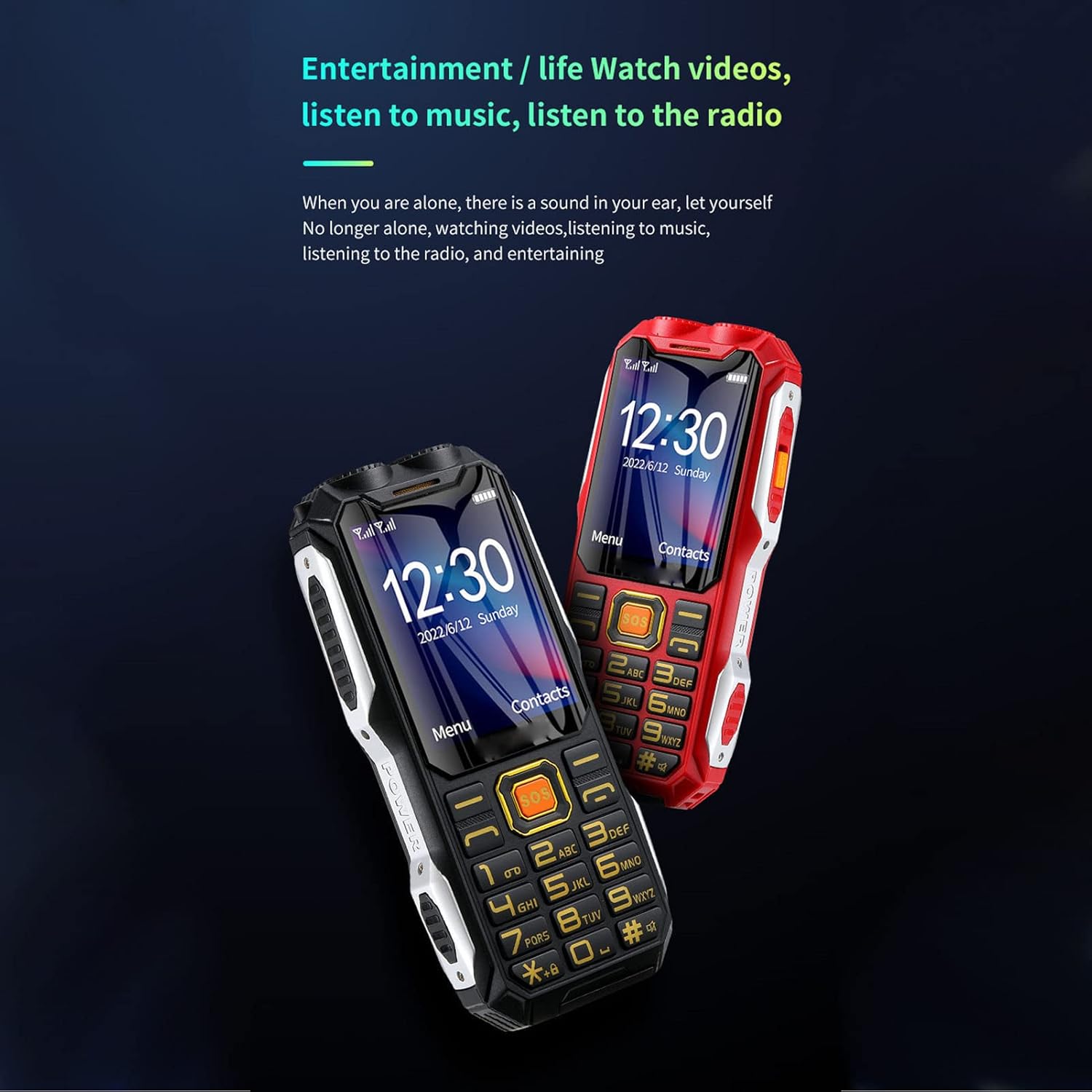 【Multifunctional】When you are alone, the sound from this phone makes you no longer lonely. You can watch videos, listen to music, listen to radio and entertain. The flashlight of the phone has dual LED wicks for long distance lighting, with a wider and longer range, making it a great helper at night.