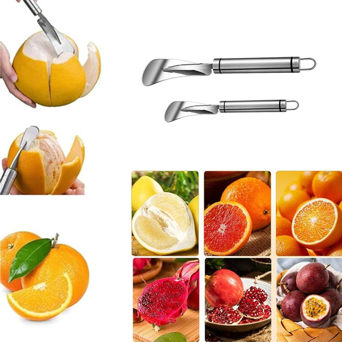 Suitable for all kinds of fruits such as oranges, citrus, lemons, grapefruit, passion fruit, pomelo, dragon fruit, etc. Making fruit peeling effortless is an essential tool for any fruit lover, but also an essential tool in the kitchen.