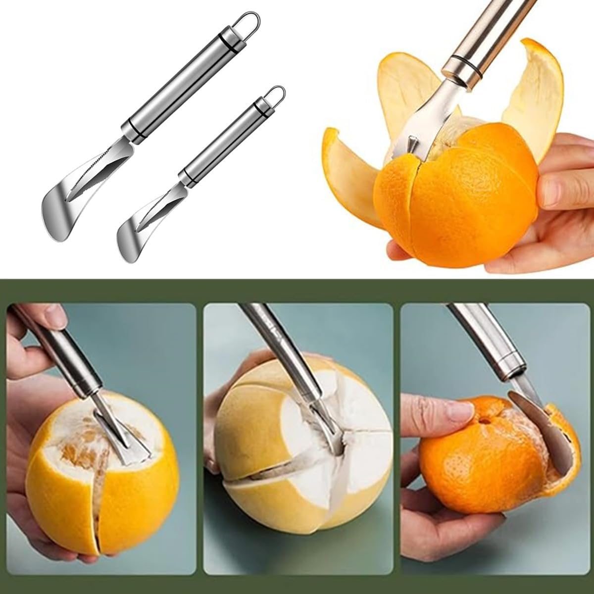 2Pcs Stainless Steel Orange Peeler, Pomelo Opener, Triangular-Blade, Zigzag-Shovel Orange Peeler Gadget for Kitchen (silver)
