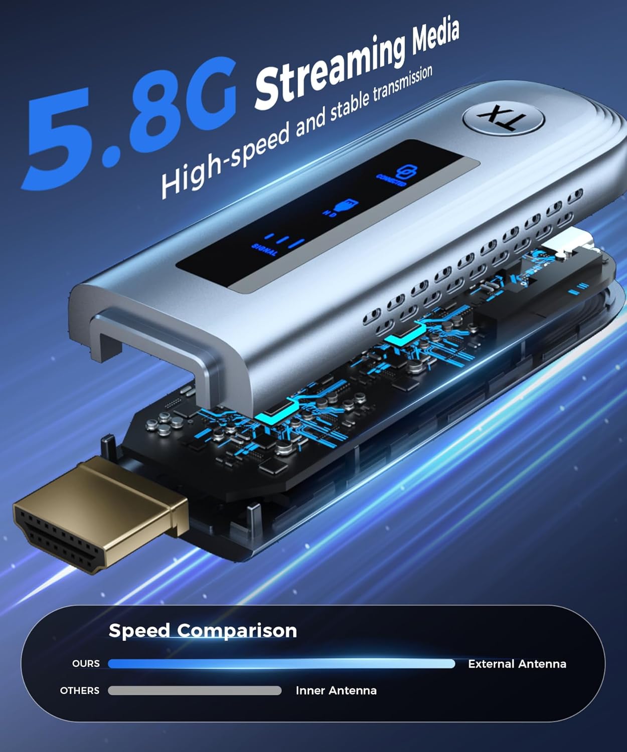I’ve been using this wireless transmitter and receive for a week, and honestly, it surprised me in a really good way. I bought it because I was tired of dealing with long HDMI cables running across my living room every time I wanted to connect my laptop to the TV. The setup was truly easy plug and play. I plugged the transmitter into my laptop and the receiver into my TV, and within seconds they paired automatically. No apps, no extra menus, nothing complicated. The new LED display is actually super helpful because it shows the connection status and makes it clear when everything is synced. The video quality is great. I was worried wireless 4K might lag or look blurry, but the picture is sharp and smooth. I use it for movies, and even presentations, it handles all of it without freezing or dropping the signal. What I like most is that it’s small and portable. I’ve already taken it to a friend’s house for a movie night, this one is definitely worth it.