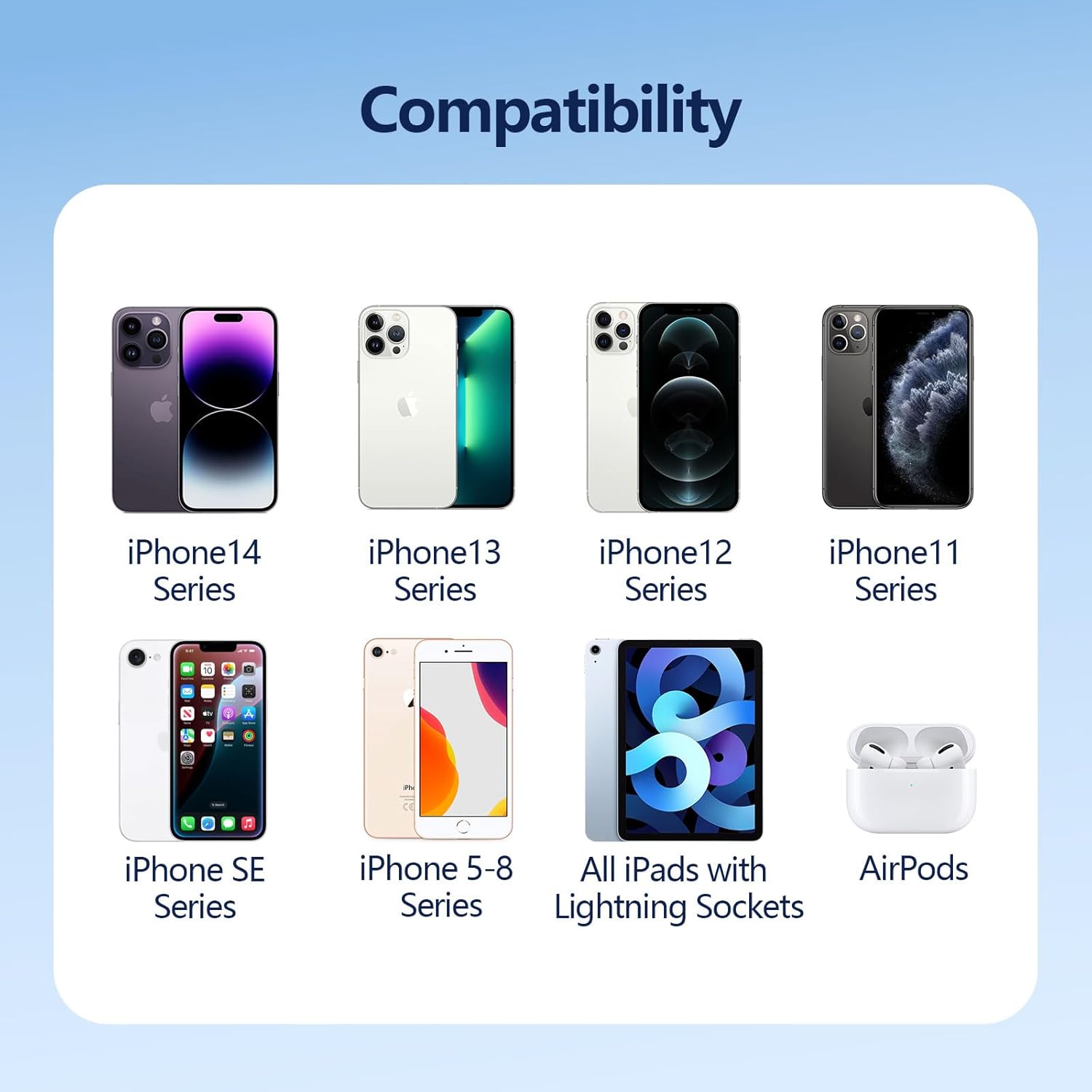🌟[Fits Every iOS Device with Lightning Socket] Compatible with iPhone 14 13 12 11 XS X 8 7 6S 6 5S 5 series, iPad, AirPods, CarPlay-Optimized Design – perfect for road trips or home offices. Backed by a 24-month warranty and US-based support. If it ever fails, we’ll rush a replacement – no forms, no drama. Pinky promise! Tired of CarPlay Ghost Disconnections? Snag This Anti-Tangle Hero🔋