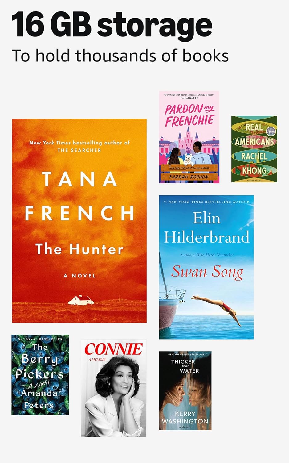 Take your library with you – 16 GB storage holds thousands of books.