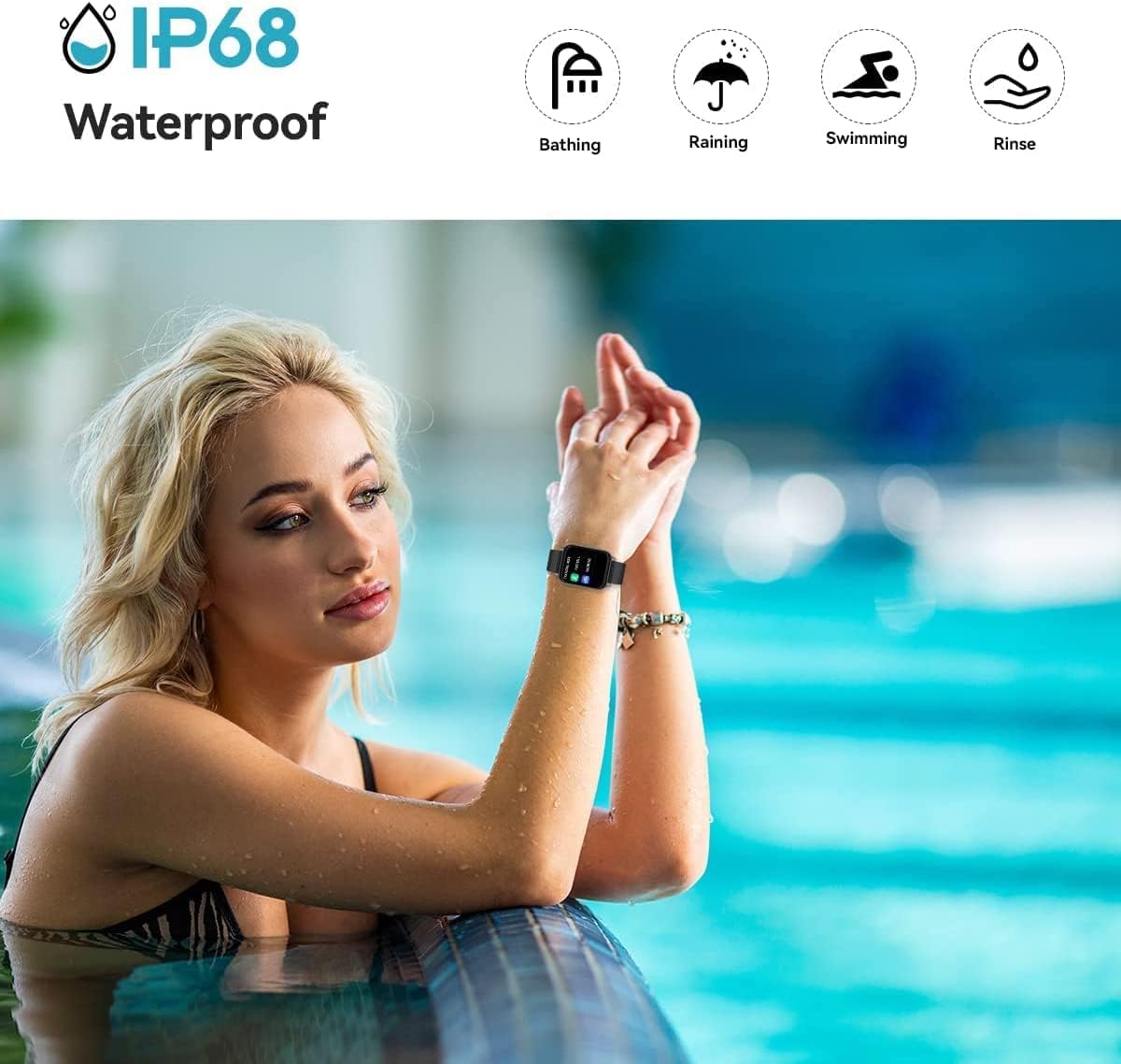 IP68 Swimming Waterproof and Maintenance: This smart watch compatible with Android 5.0 / iOS 9.0 or above. You won’t have to worry if your fitness smartwatch gets wet, whether you’re swimming in the pool or running in the rain, even in the shower. If the band gets wet or if you sweat while wearing it, remove and dry it carefully before putting it back on. For the health of your skin the band must be dry and clean.