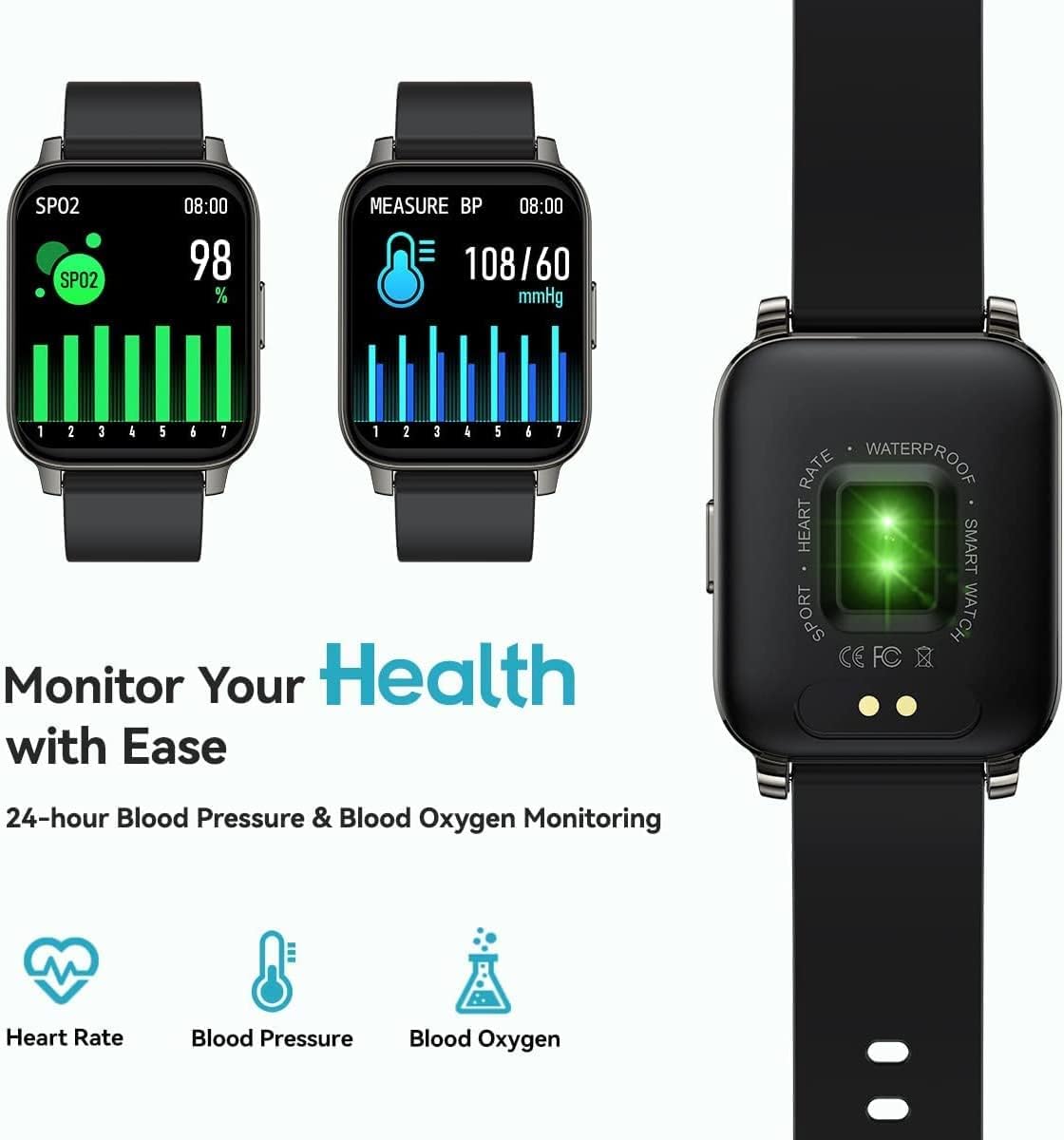 Health Monitor: Smartwatch has heart rate, blood pressure and blood oxygen monitoring functions.