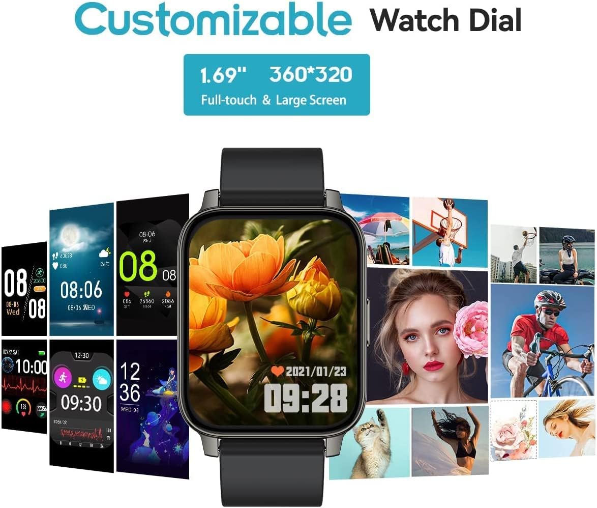 1.69 Inch Full Touch Screen: This sport watch features a 1.69 inch TFT-LCD color display for outstanding HD quality. Full touch screen technology makes your operation quick and easy. Your message notifications can also be displayed straight to your device screen. With 4 levels of brightness, you can also adjust the brightness to see the display clearly. There are multiple watch faces to choose from, you can also customize the dial to show your personality.