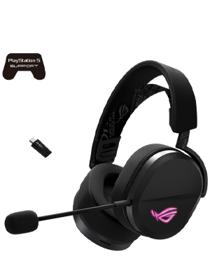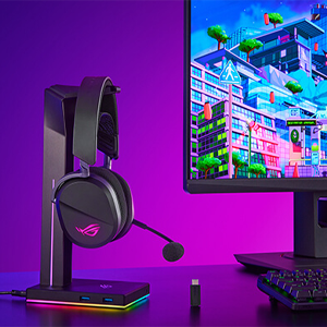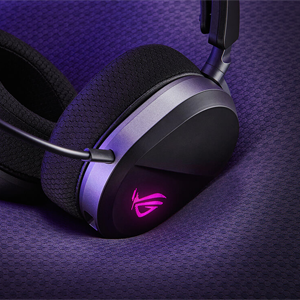 Tri-mode RGB gaming headset with ROG SpeedNova wireless technology, 50 mm ROG titanium-plated diaphragm drivers, refined wireless sound signature, 10 mm super-wideband boom microphone, lightweight 309-g design, plus ASUS Aura Sync RGB lighting