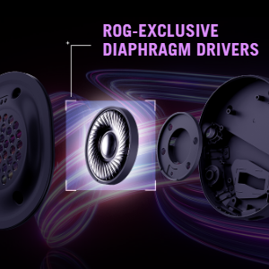 50mm ROG diaphragm drivers with titanium coating: ROG exclusive drivers deliver rich, detailed sound with a wide frequency response of 20Hz-20KHz