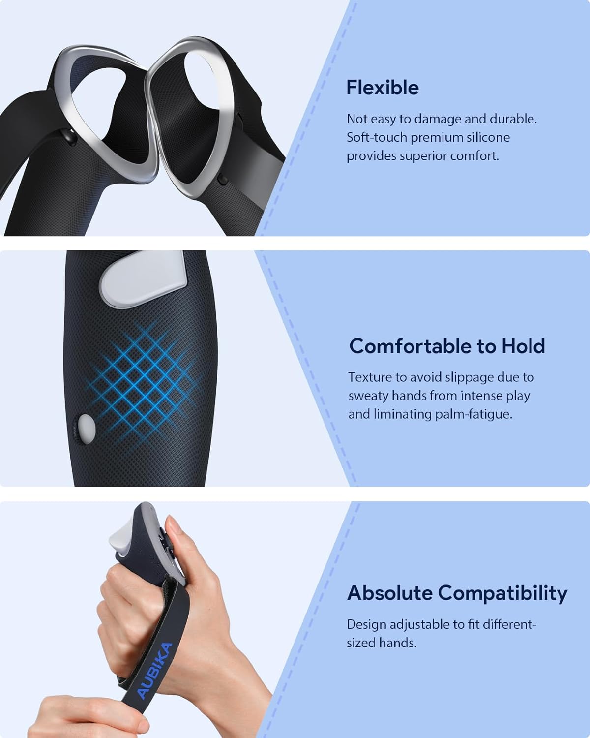 Safety & Compatibility:AUBIKA’s comprehensive multi-protect safety system includes overcharge protection, short circuit protection, temperature control, and more. The upgraded rechargeable grip covers make sure that you get the most out of your controller performance. Experience Quest 3S/Quest 3 the way it was meant to be. Recommended for use with our charging dock – CyberCore. Achieve charging, organize and decorate all in one