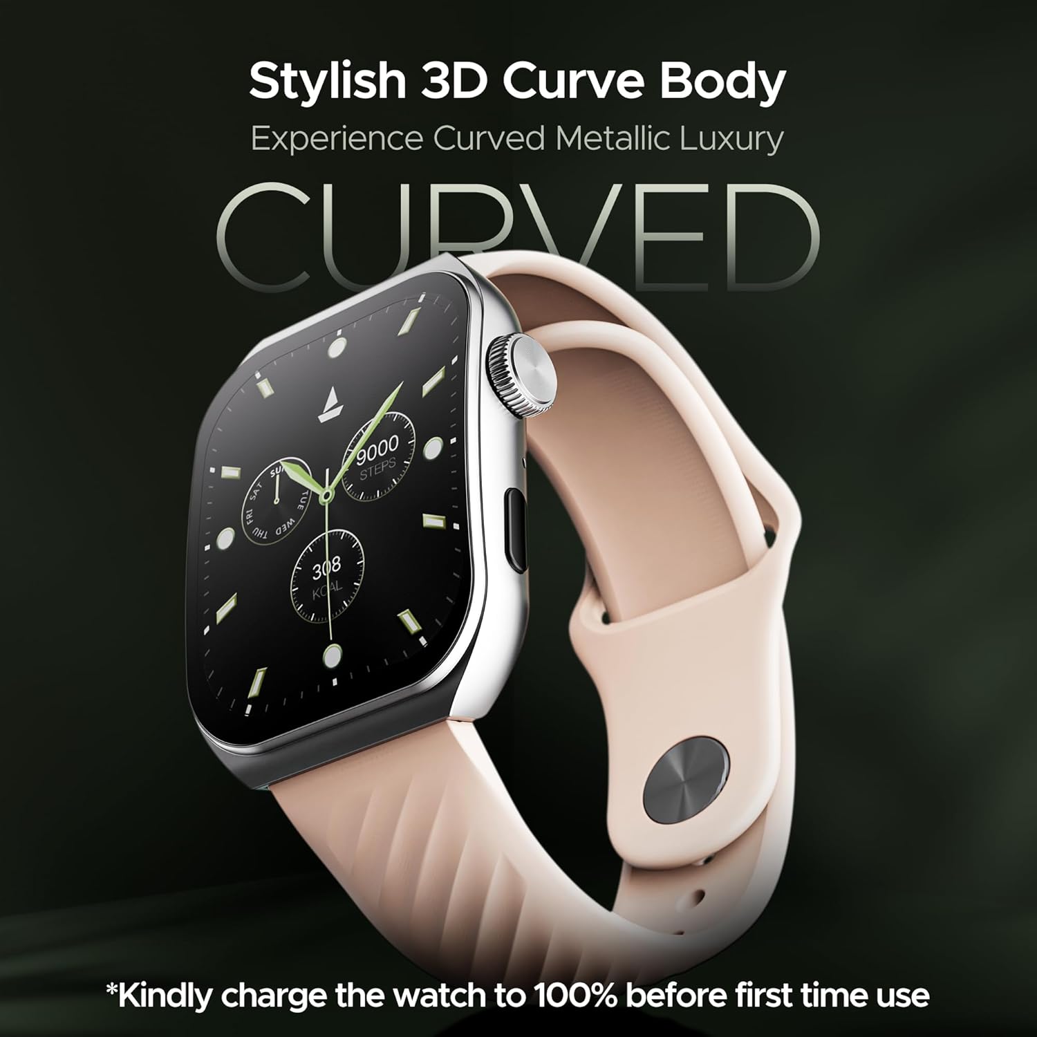 boAt Newly Launched Ultima Vogue Smart Watch with 1.96″ AMOLED Curved Display, BT Calling, Functional Crown, Widget Control, Always on Display, HR & SpO2 Monitoring, IP67(Beige)
