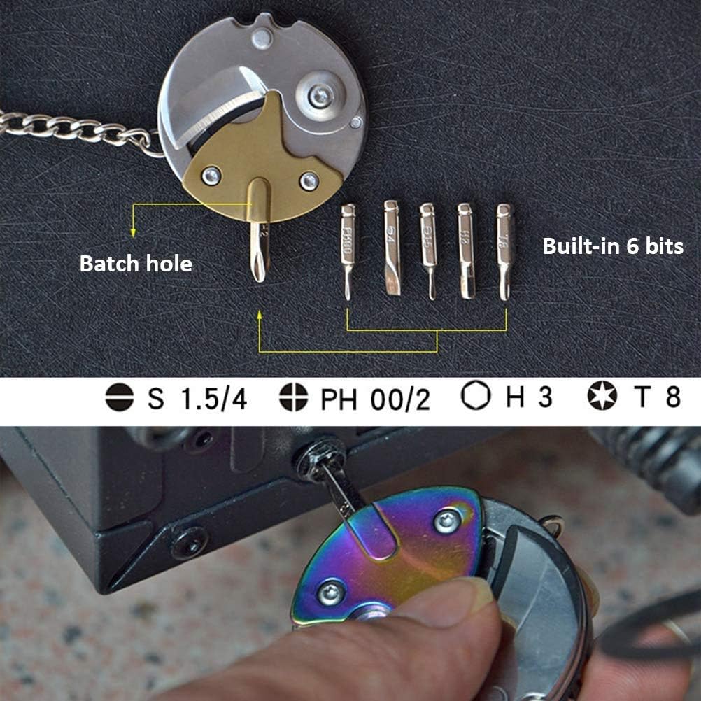 Folding Screwdriver,Multifunction Foldable Slit Screw Cutter,Compact Multi-tool Gadget Keychain for Camping, DIY Activities, Fishing Description: Blade material: 3CR13Handle material: 420 steel engineering plasticSize: Diameter 4.2 0.9CM in height (the highest point is 1.1CM)Expanded length: 6.5CMBlade length: 2.2CMBlade thickness: 2.0MMBlade width: 1.5CMScrewdriver: 6pcs (hidden on the back)Product use: outdoor sports, carry around, home daily use Package included: 1x Foldable Slit Screw Cutter Note: Due to the different monitor and light effect,the actual color maybe a slight different from the picture color.Please allow 1-2cm differs due to manual measurement. Future: The unique design of foldable coin cutter shape, perfect for dailylife.Convenient to use, easy to fold and unfold. There are several mini screws for different use.Suitable for outdoor sports, carry around, home daily use. The multi-Tool set features a folding design, which is super compact and easy to be carried around, preventing loss of small screwdrivers. Compact size makes the folding pliers a best partner for any outdoor activity including hiking, camping, fishing, survival.