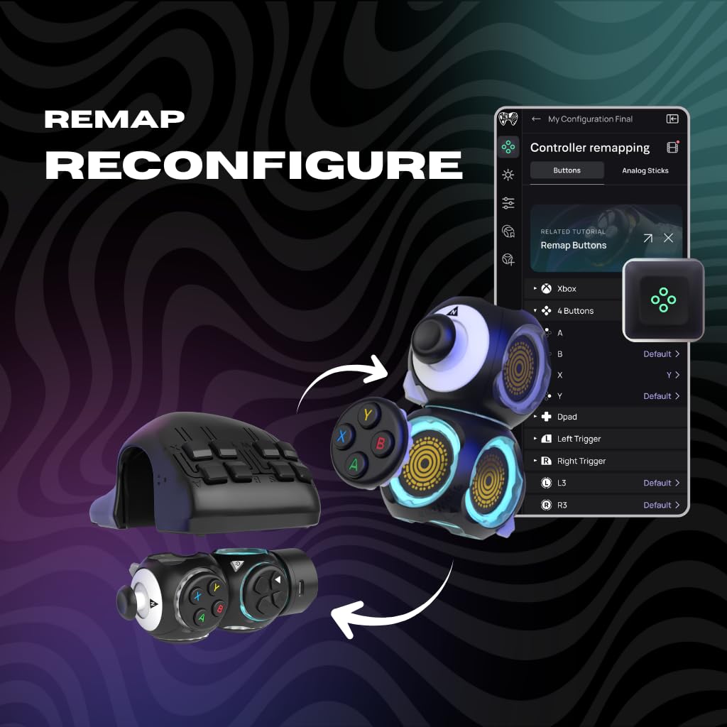 Advanced Remapping: S wap button positions, adjust triggers, reverse analog sticks, and customize LED lighting—no tools or difficult coding required.
