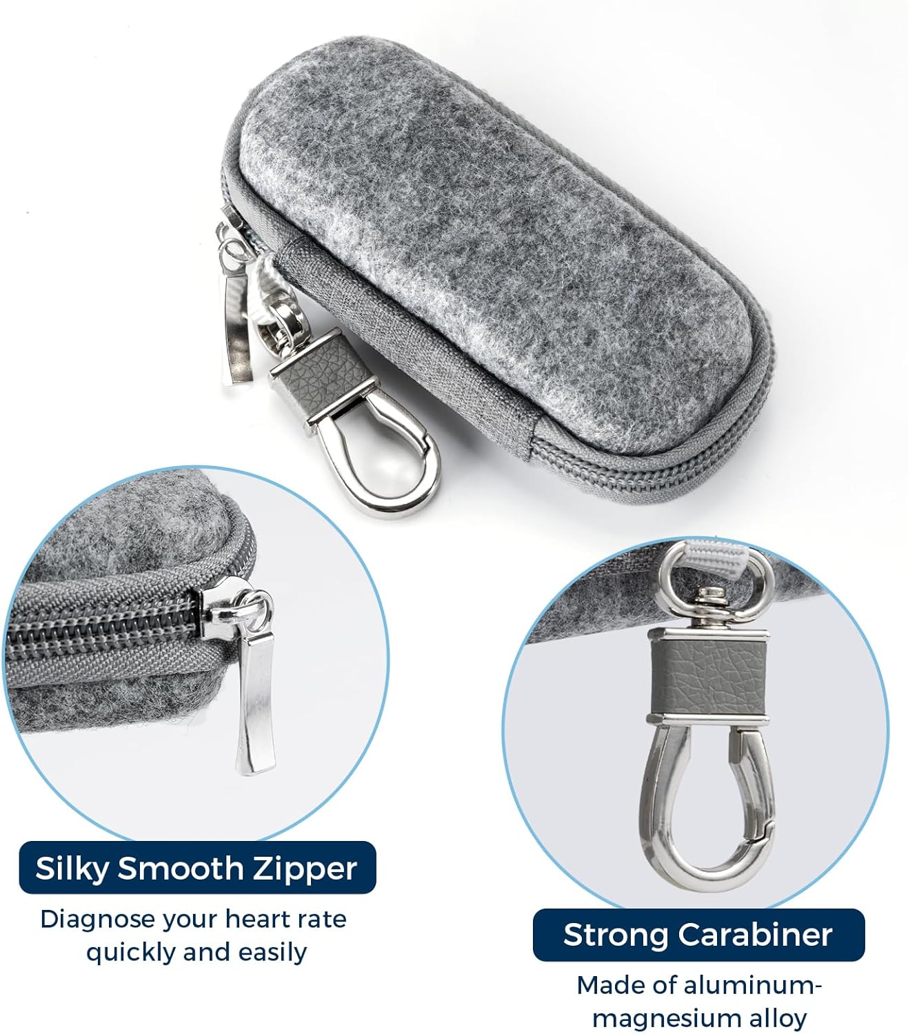 【Quick and Easy to Use】With lightweight carabiner, strong and smooth zipper and compact design, you can carry this sensor in your bag or pocket and carry the EKG/ECG monitor before, during and after exercise. Just open the case, place your finger, wait 30 sec, and you can quickly diagnose your heart rate anytime and anywhere, saving the time and trouble of rushing to a doctor or clinic.