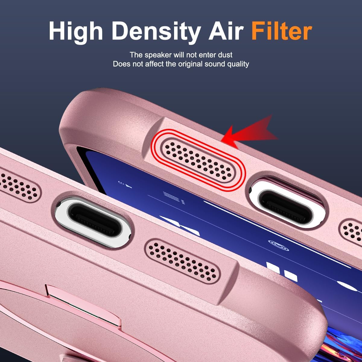 Compatible with iPhone 15 Pro Max Case with Invisible Magnetic O-Ring Stand Military-Grade Case for iPhone 15 ProMax 6.7″ [Compatible with Mag-Safe][Great Grip Feeling], Rose Gold