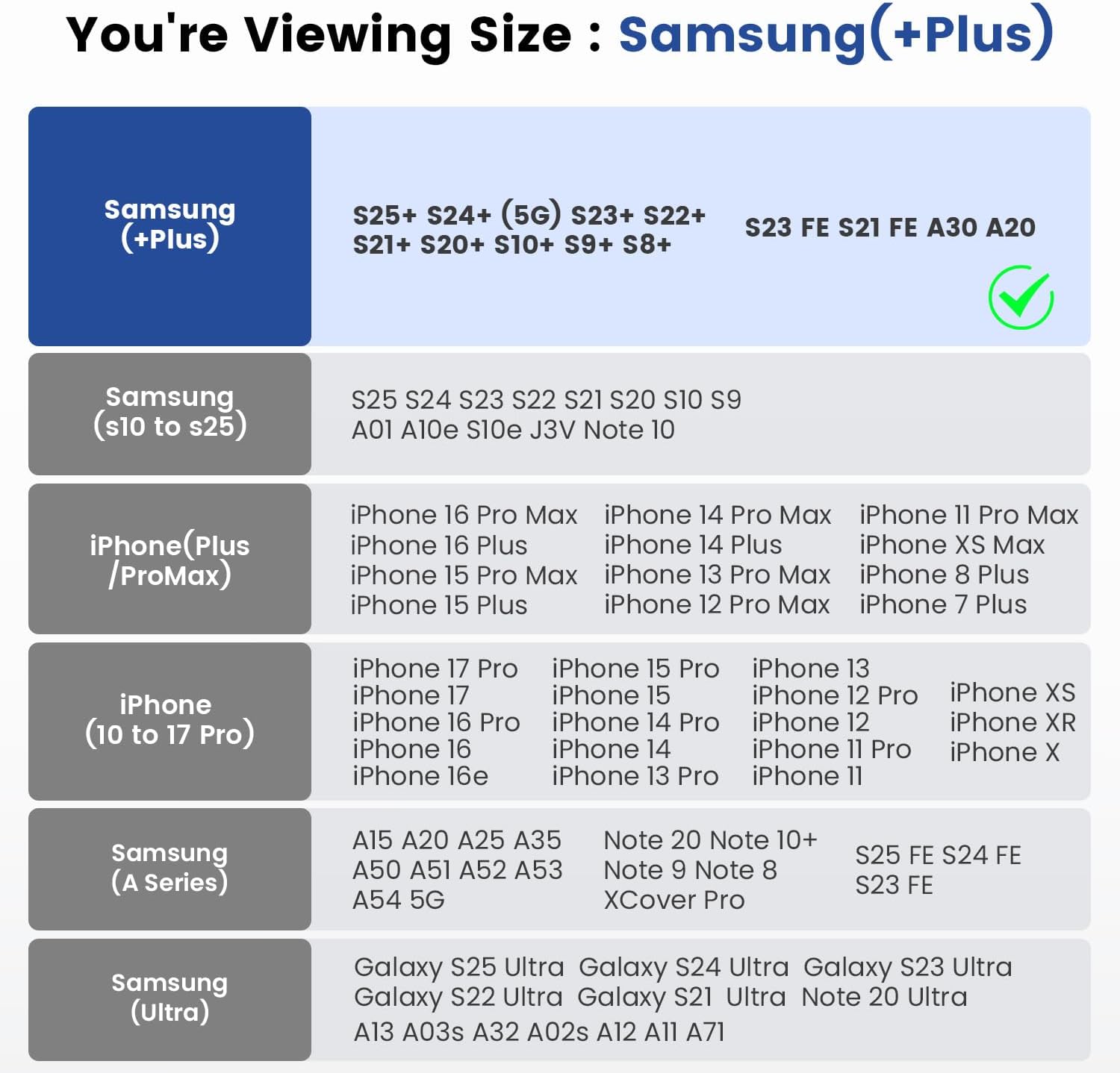 This DeBin (Samsung +Plus) size holster fits Samsung Galaxy S25+ Plus, S24+ Plus 5G, S23+, S22+, S21+, S20+ S10+ S8+ S9+, S23 FE, S21 FE, A20, A30.