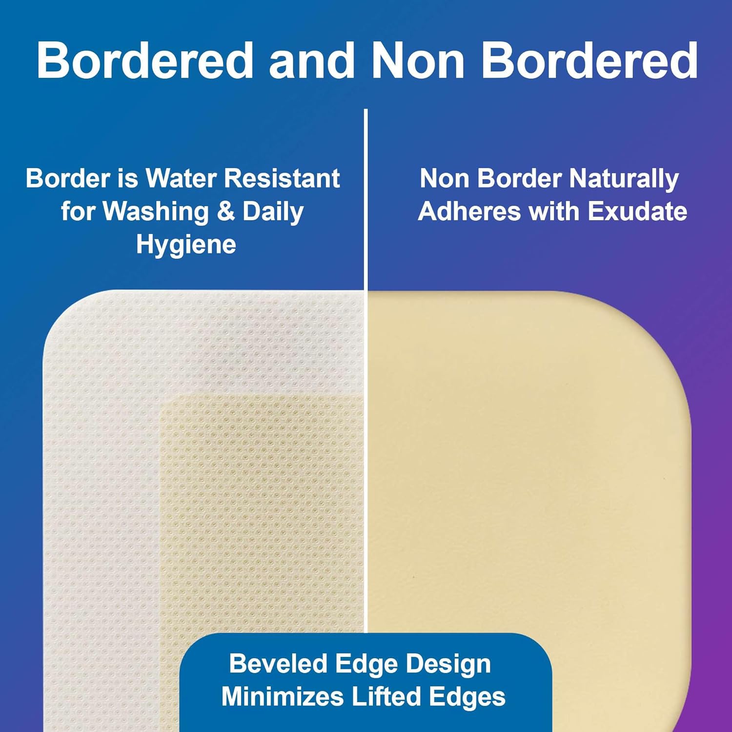 The bordered version features a water-resistant adhesive that allows for normal washing and bathing without compromising adhesion. A beveled edge design reduces the chances of dressing lift, improving durability and minimizing disruption. Choose from various sizes, including 4″ x 4″, 6″ x 6″, and 6″ x 7″ sacral, to meet a range of wound care needs.