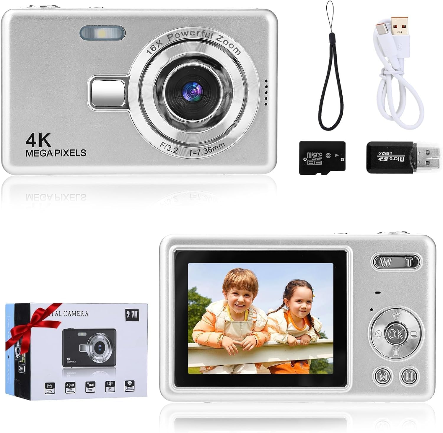 【50MP Pictures & 4K Resolution Video】Our new version digital camera is equipped with the latest generation of CMOS sensors, supporting maximum 4K videos and 50MP pictures, producing natural colors with vivid and clear details. Whether you are sharing your adventures or starting a YouTube channel, this camera for kids provides clear and detailed shots to bring your memories to life.