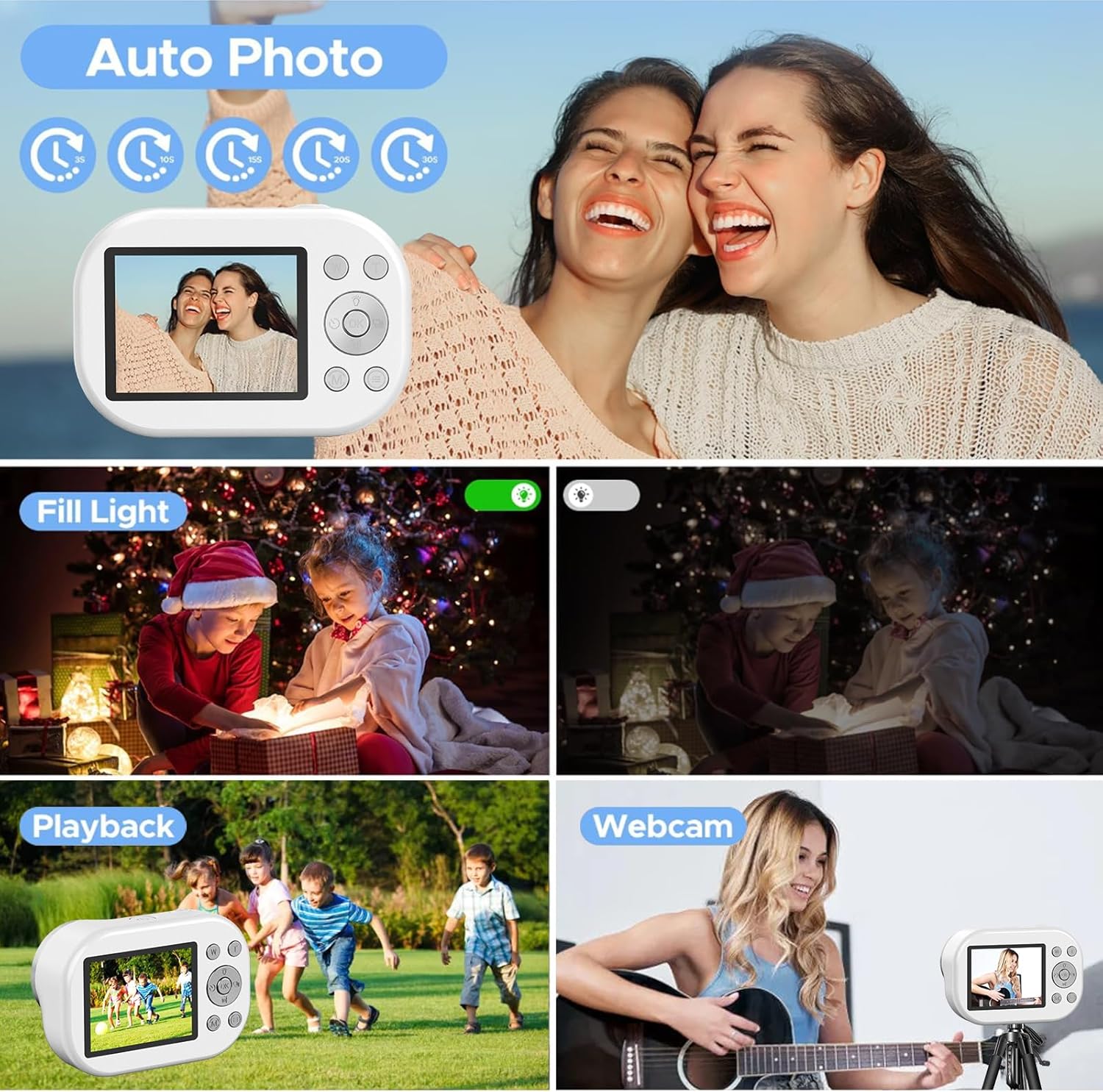 4.Multifunctional Use**: More than just a digital camera, this model serves as a webcam and MP3 player, providing versatile utility for various needs. Capture high-quality video for your vlogs and enjoy music playback, all in one compact device.