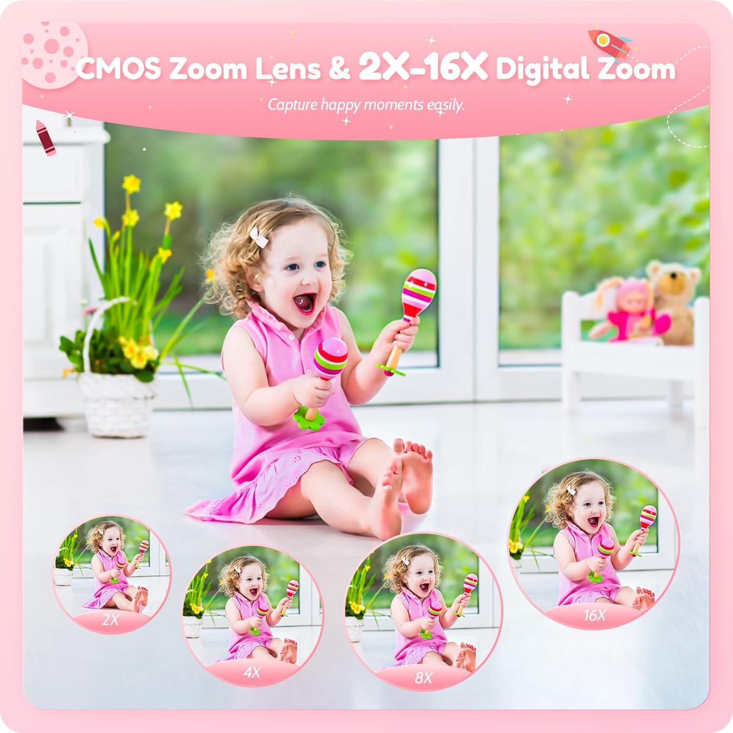 【16x Digital Zoom & Anti-Shake Function】 With a 16x digital zoom, you can easily capture distant details and the built-in anti-shake technology ensures that your photo and video remain sharp and stable, even when zoomed in.
