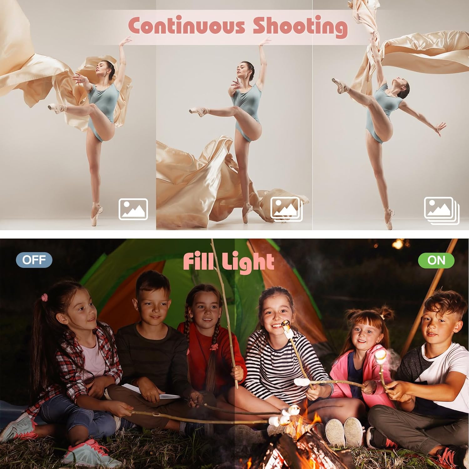 【 FHD 1080P & 44MP Digital Camera 】FHD 1080P video resolution and 44MP image resolution to capture the most precious moments in better image sharpness or clear video. 4 to 15 years kids and students can freely use lightweight compact camera to record fun times with family members or friends in school.