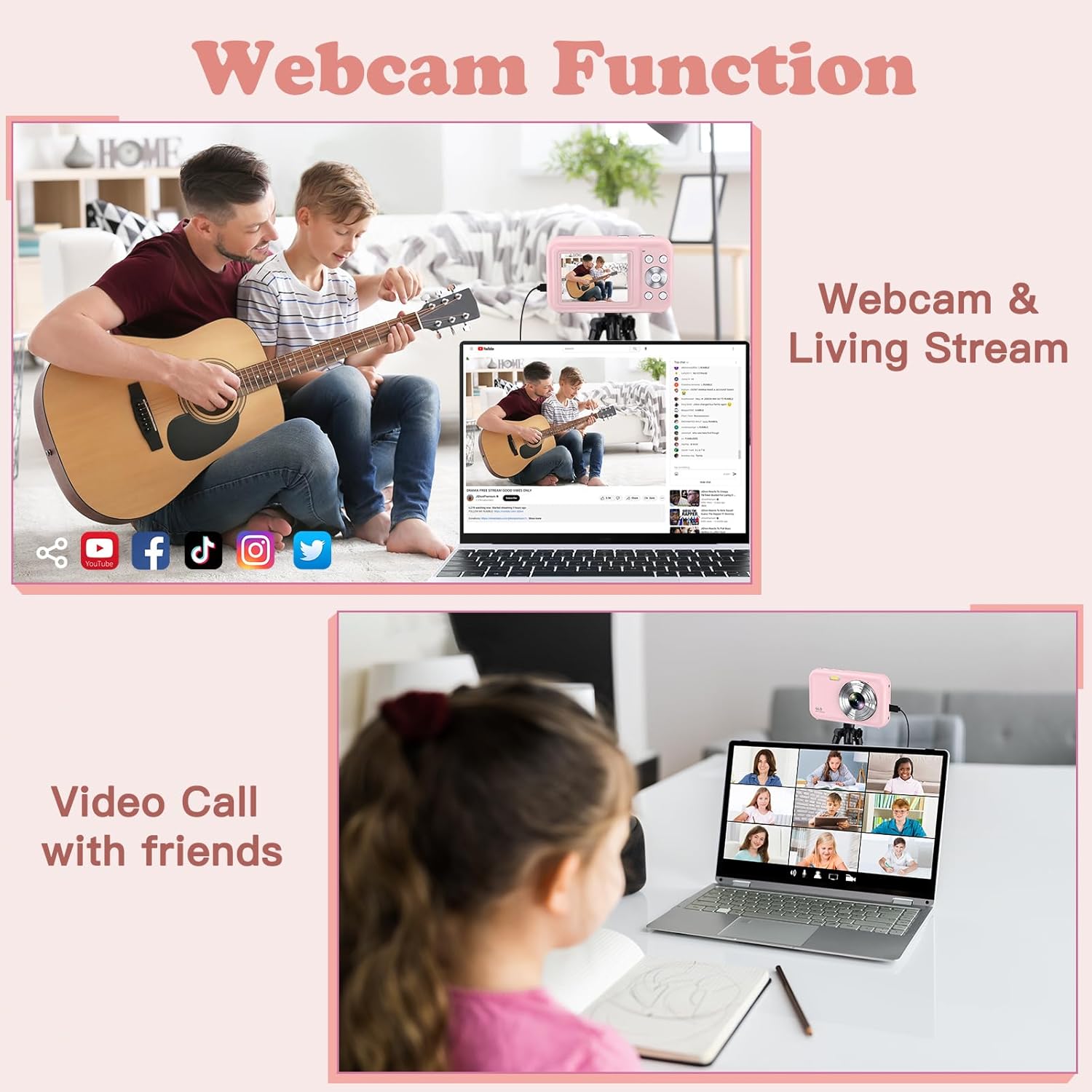 【Vlogging Recording and Webcam to Real Time Sharing 】Digital camera can serve as a webcam so you can enjoy video calling or live streaming. You can even connect your phone with an OTG adapter (Not included) to share your results directly to Tiktok, YouTube, Facebook or other social media in real time or transfer to your computer with the supplied Type-C cable and then post it on social media.