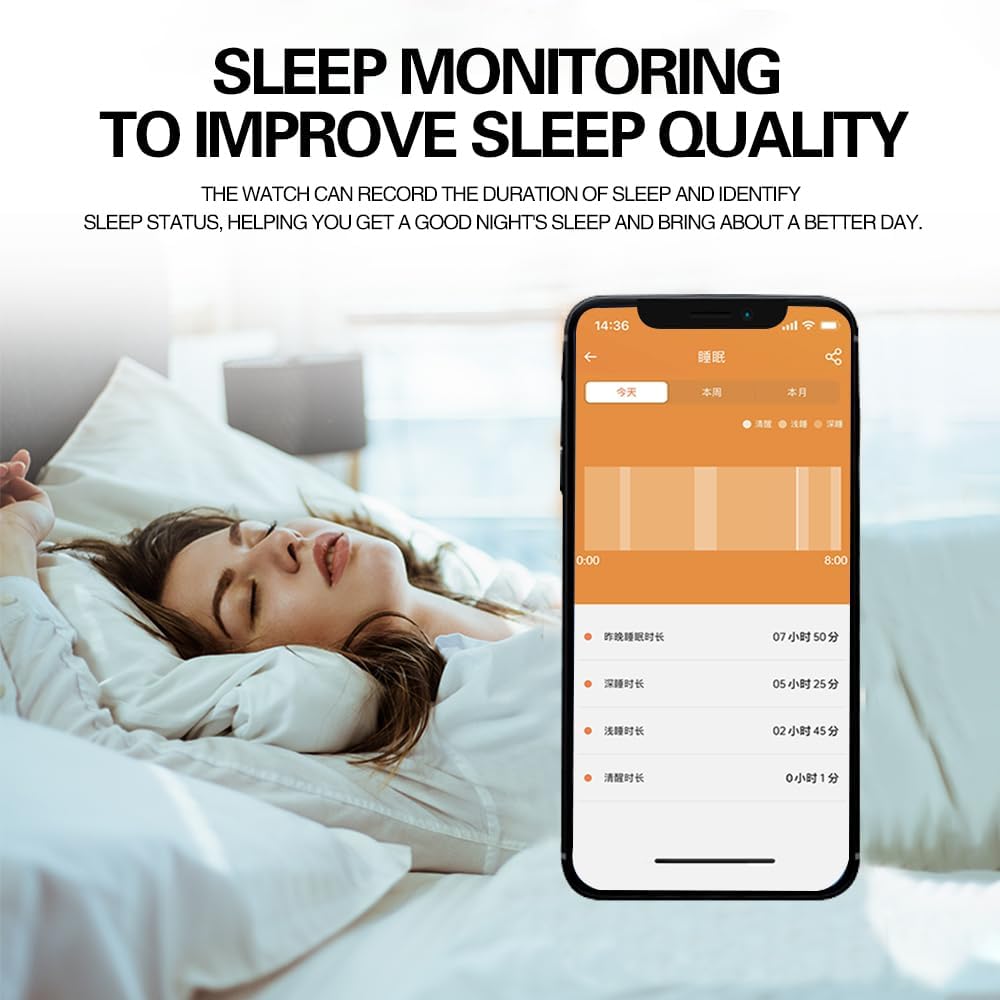 💗【24/7 Advanced Health & Sleep Tracking】The state-of-the-art sensor monitors your health on a 24h basis, LEDs and photodiodes continuously capture your data: heart rate, blood oxygen, blood pressure. Combines the health data with the physicalmovement state, and present in the form of curves or graphs, giving you a comprehensive view of your health. Record your sleep data so you can know how to improve your sleep.