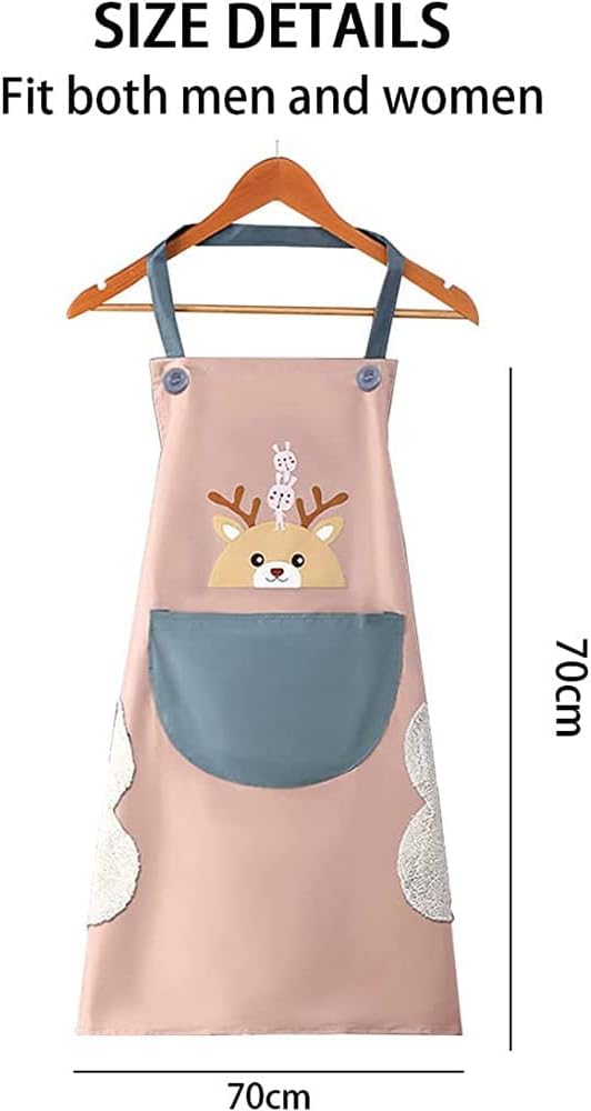 DOCAT Apron for Women Cute Deer Aprons With Pockets and Hand-Wiping Kitchen Apron Waterproof and Oil-proof Kitchen Accessories Items for Home Cooking Fits Men,Women Home Restaurant (Blue)