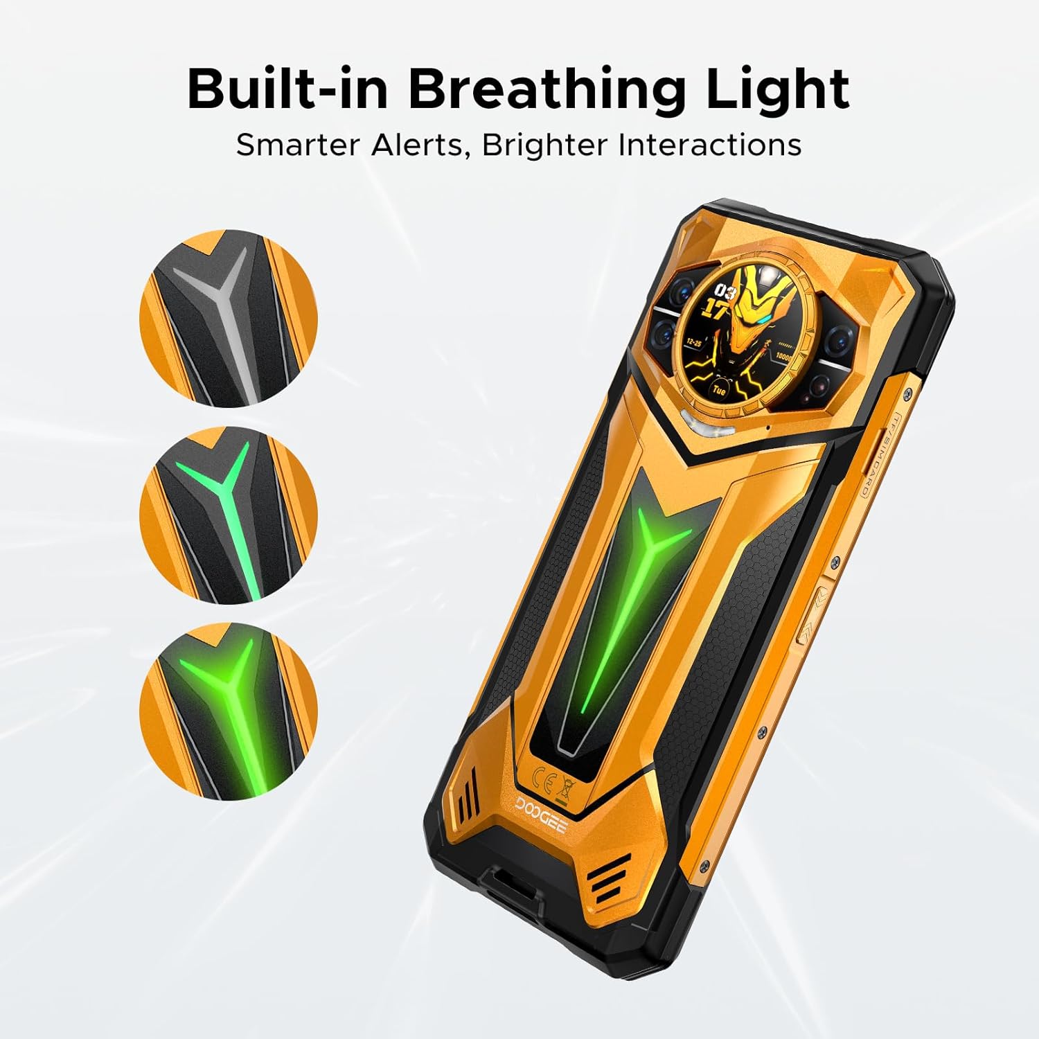 【1.32″ AMOLED Secondary Display & Rugged Durability】Stay efficient without draining the main battery. The 1.32″ circular 60Hz AMOLED rear screen shows time, notifications, music controls, and the compass instantly. Built to survive, this rugged 5G cell phone meets the highest standards: IP68, IP69K, and MIL-STD-810H. It’s waterproof, dustproof, and shockproof, ready for any extreme condition