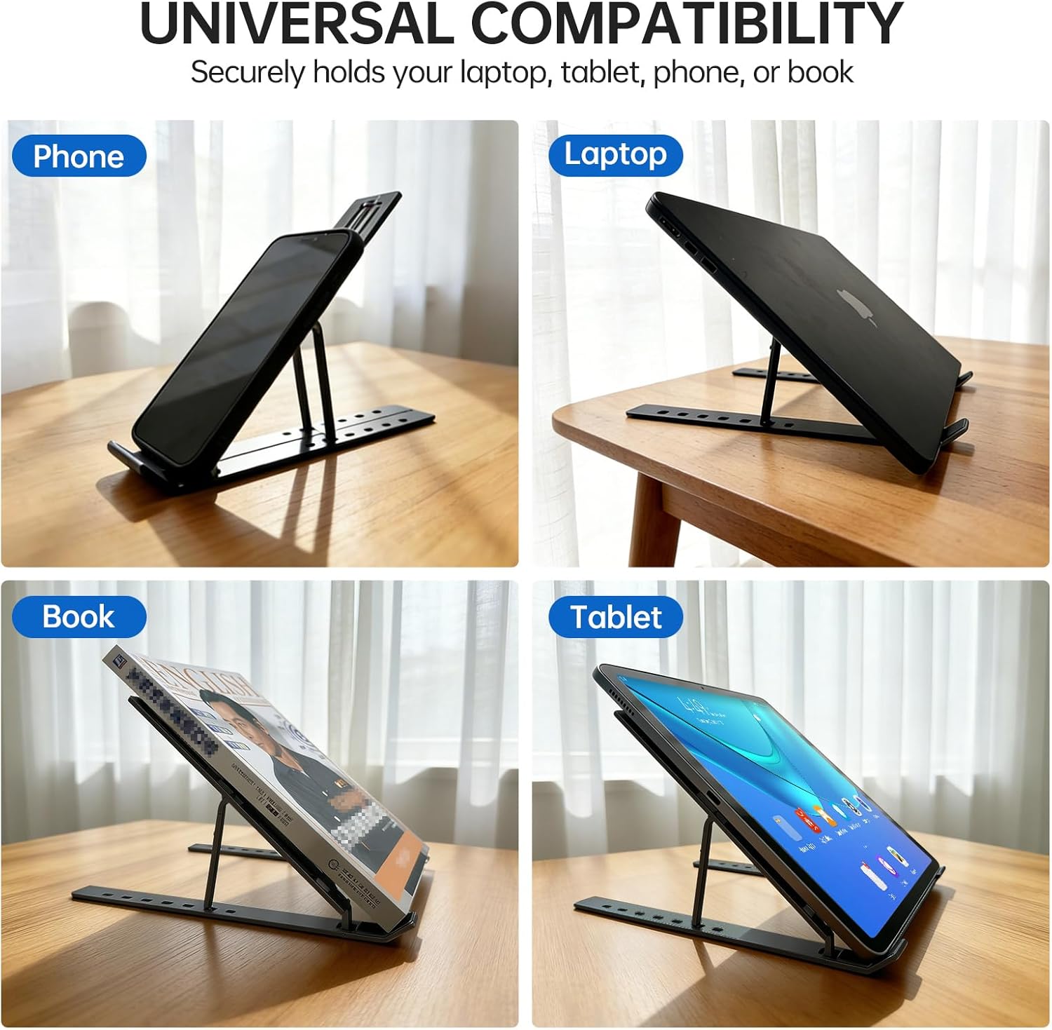 Broad Compatibility: Our laptop mount is compatible with all laptops from 10-15.6 inches, such as Dell XPS, HP, ASUS, Google Pixelbook, Lenovo ThinkPad, Acer, Chromebook and Microsoft Surface, etc.Be your ideal companion in Home, Office & Outdoor