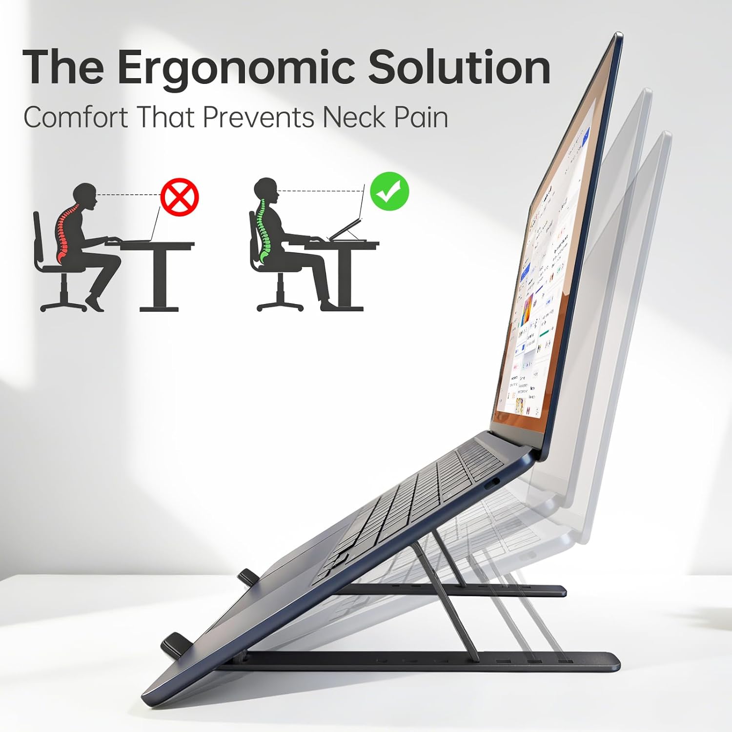 Heat Dissipation: The forward-tilt angle and open design offers greater ventilation and more airflow to cool your laptop during operation other than it just lays flat on the table