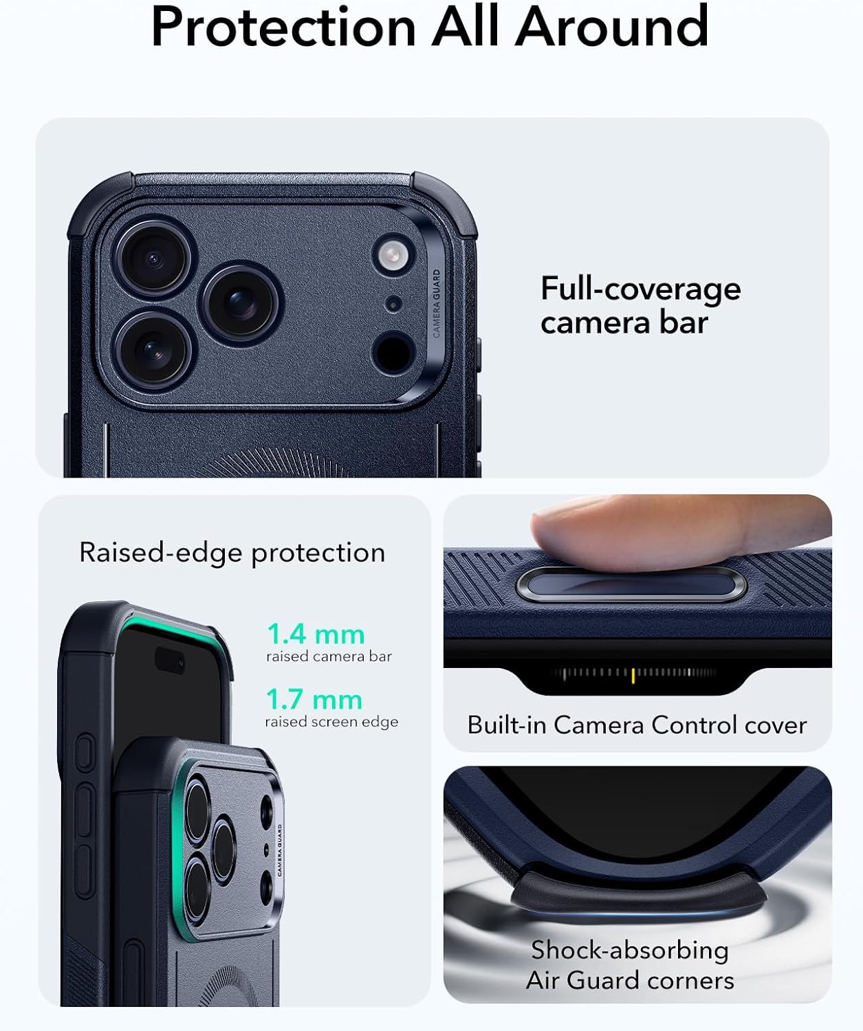 13 reviews for ESR for iPhone 17 Pro Case, 7X Military-Grade Drop Protection, Shock-Absorbing Rugged Cover with Camera Control Button, MagSafe Accessories Compatible, Cyber Series, Navy Blue