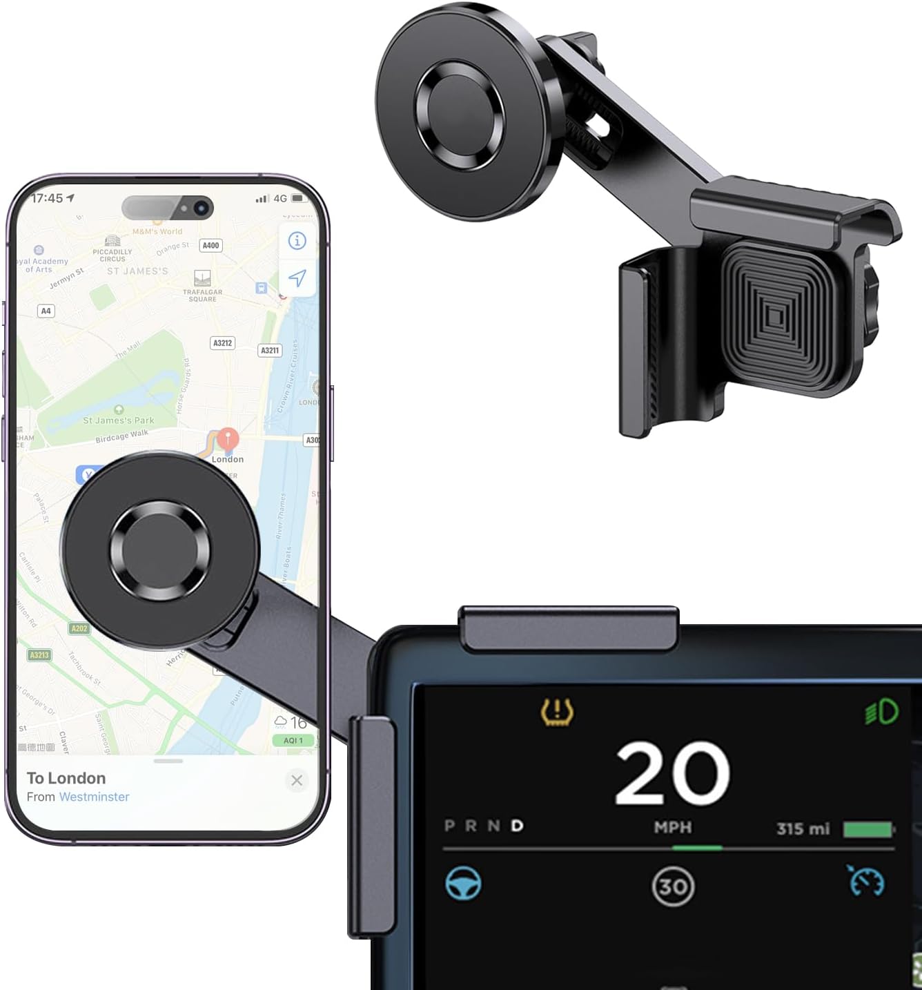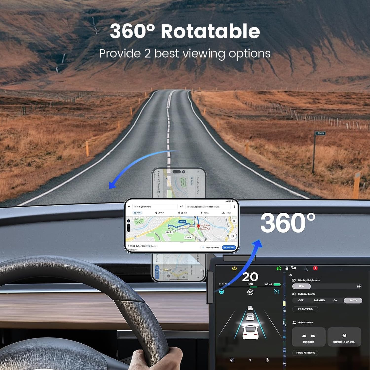 Designed for Tesla Model 3/Y: This phone mount is specifically designed for a central touch screen, allowing for easy installation on the corners of the center console screen with its adjustable knob. The foldable design allows you to easily hide it when you don’t need it.