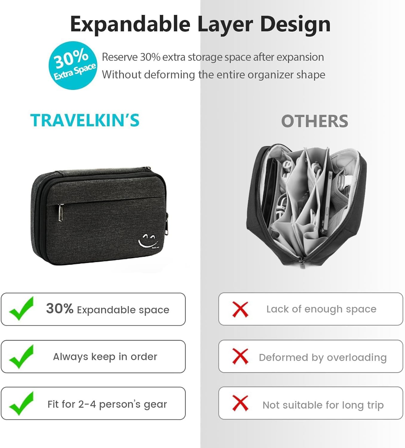 Unique Telescopic And Expandable Space Design: The electronic bag has 30% extra space after expanding the front layer. The electronics storage bag features a user-friendly design and an additional functionality of expandability, allowing it to adapt to different requirements. The double-layer design allows you to place different things reasonably and avoid clutter.