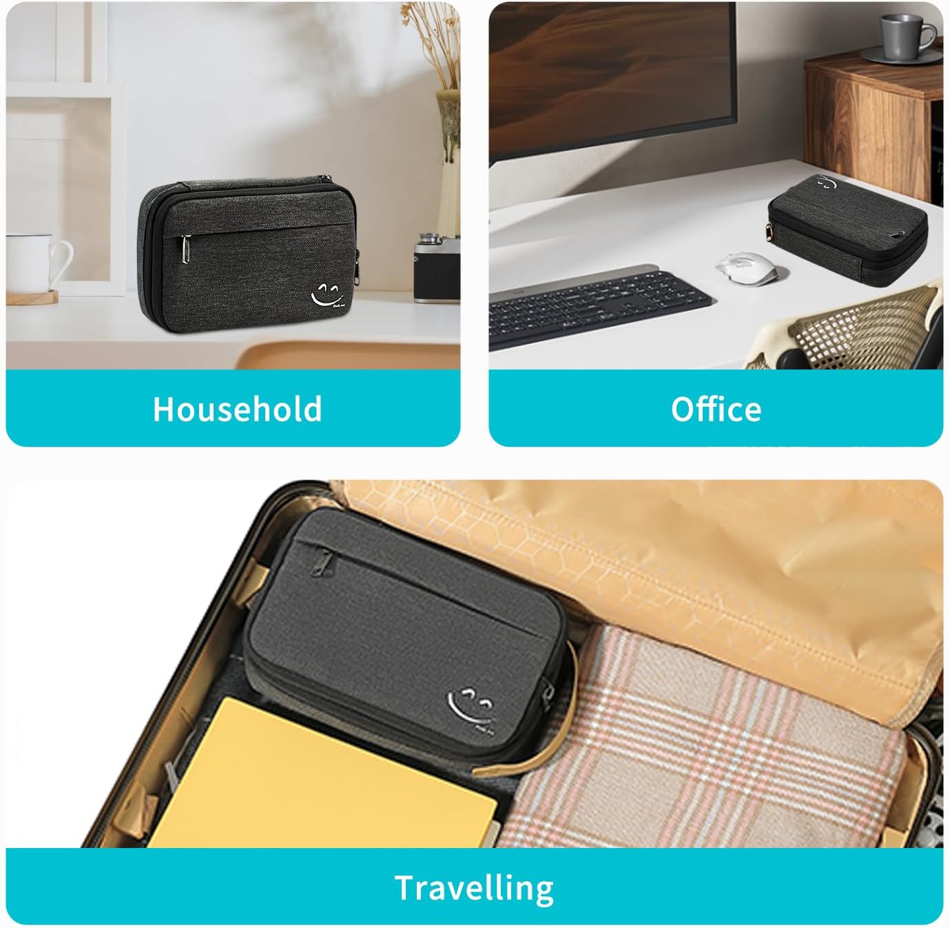 Lightweight Travel Accessories: The size of the cable storage travel case is 21cm x 14cm x 5.5cm, Expanded size:21cm x 14cm x 7.5cm. The compact size and lightweight design make it highly portable and can be easily stored in your backpacks, handbags, or laptop bags without occupying much space. It is well-suited for both family use and daily organization.