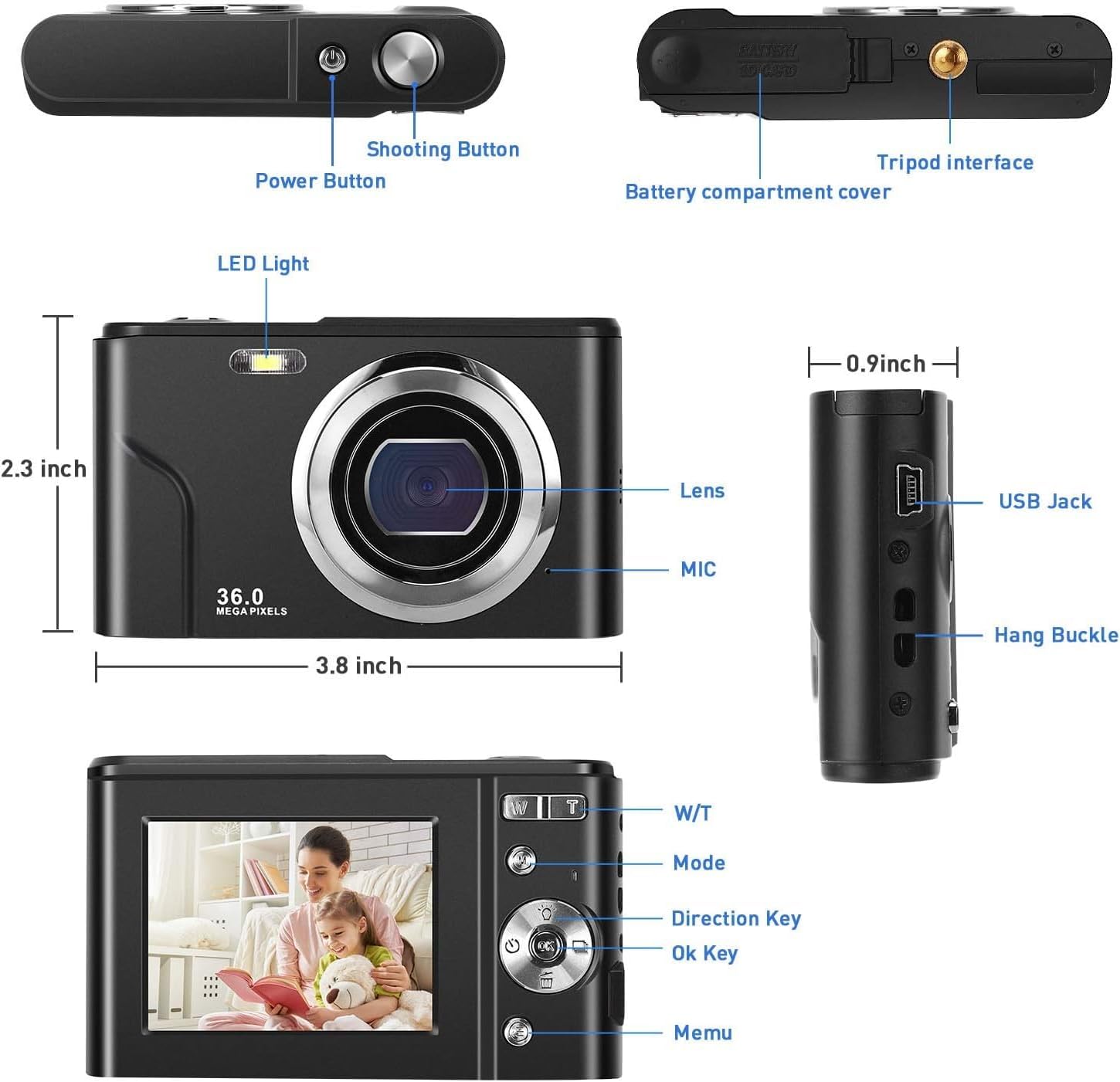 【Trustworthy Warranty and Packing List】We offer a 1-year worry-free warranty, along with a free replacement policy, as well as thoughtful 7/24 customer support service. The small digital camera comes with a 48MP Digital camera, 2 Rechargeable batteries, a USB cable, an Adapter, a User manual, a camera bag, and a lanyard.