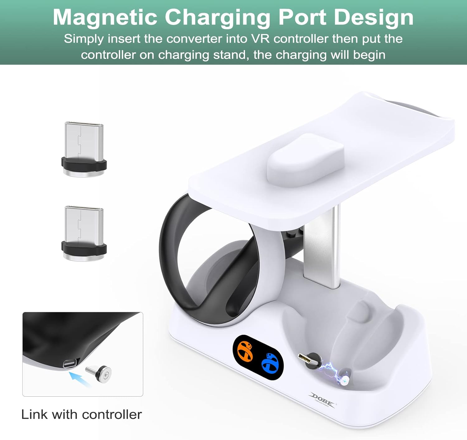 【What you’ll get】You will get 1x Charging Station for Controllers; 1x Stand for Headset; 2xMagnetic charging interfaces for controller charging; For every purchase, we provide 7 x 24 customer service, if there are any questions, please contact us, we will do our best to make you satisfied.
