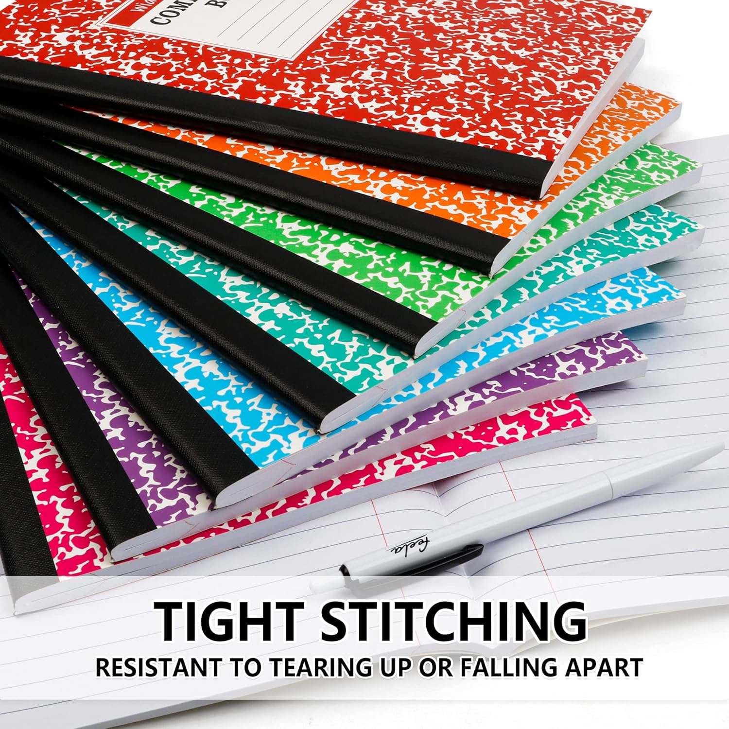 Feela Wide Ruled Composition Notebooks have 8 different pastel bright colors. You can distinguish different subjects or notes with different colors. The special marble pattern on the cover is carefully picked in order to give you a better visual experience.