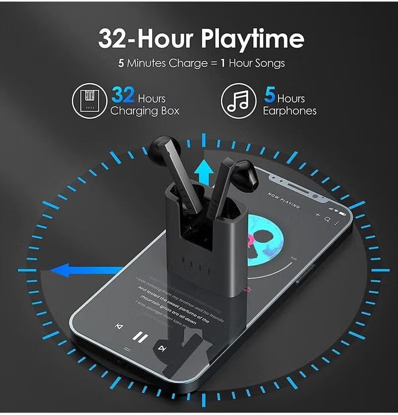 - Fast Charging: 10 minutes of charge = 2 hours of use. Total of 32 hours with the charging case.