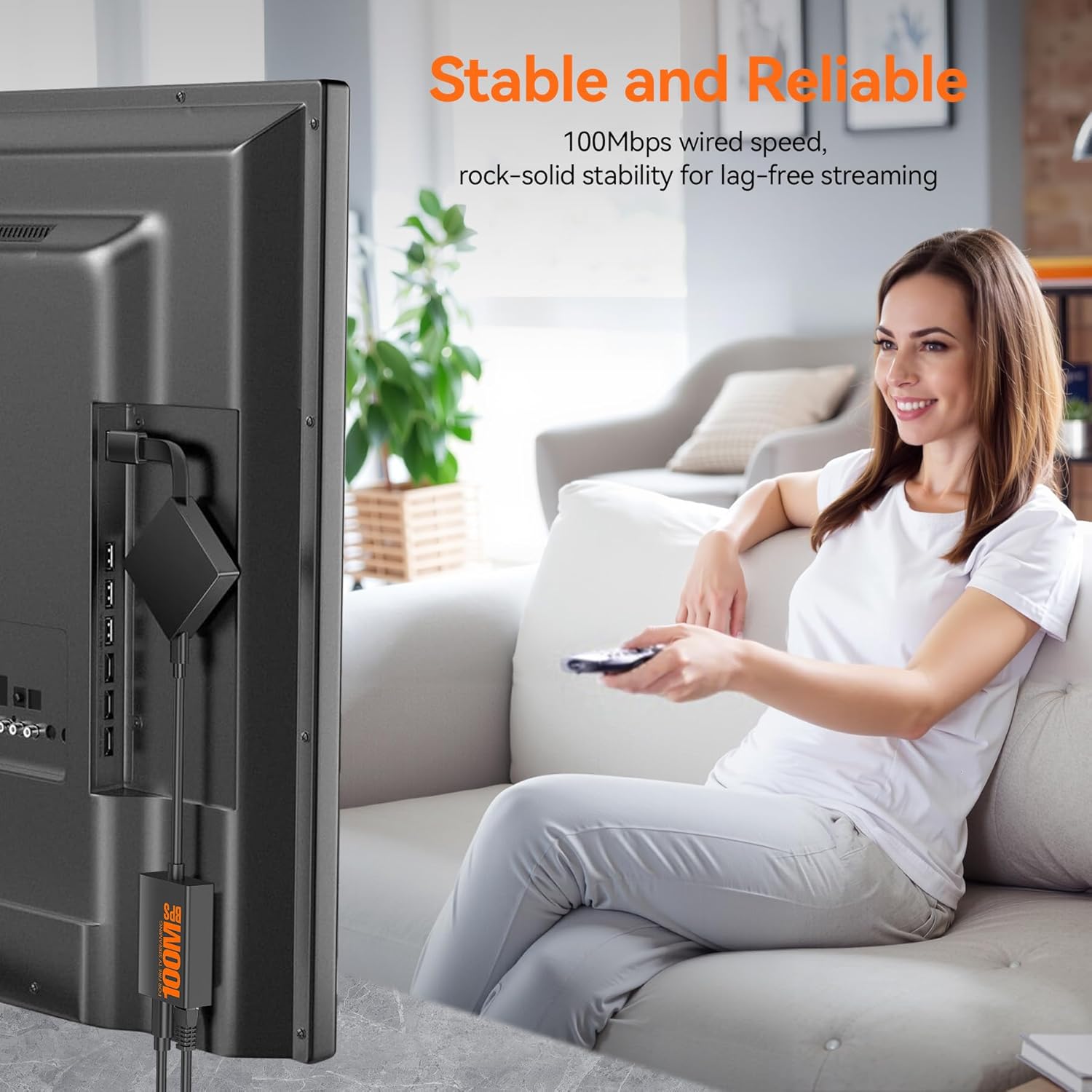Eliminate WiFi Instability for Your Fire TV Stick: Tired of buffering, lag, or sudden disconnects on your Fire TV Stick? Say goodbye to unreliable WiFi. Our Ethernet Adapter transforms your streaming experience by delivering stable 100 Mbps wired internet. No more weak signals or frustrating interruptions—just plug it in and unlock seamless 4K/HD video, glitch-free gaming, and instant downloads. Stream smarter, not harder—your ultimate entertainment upgrade starts now!