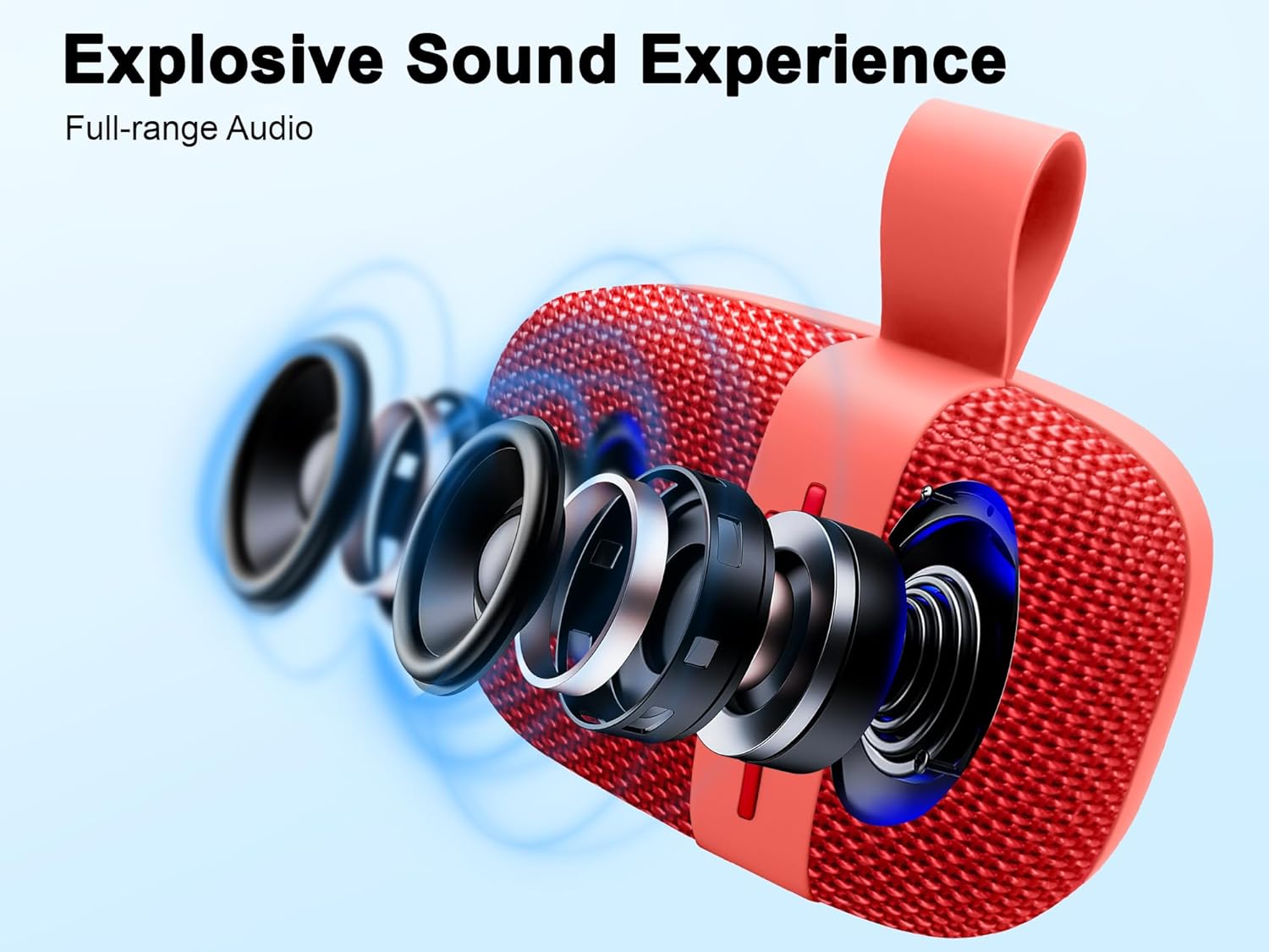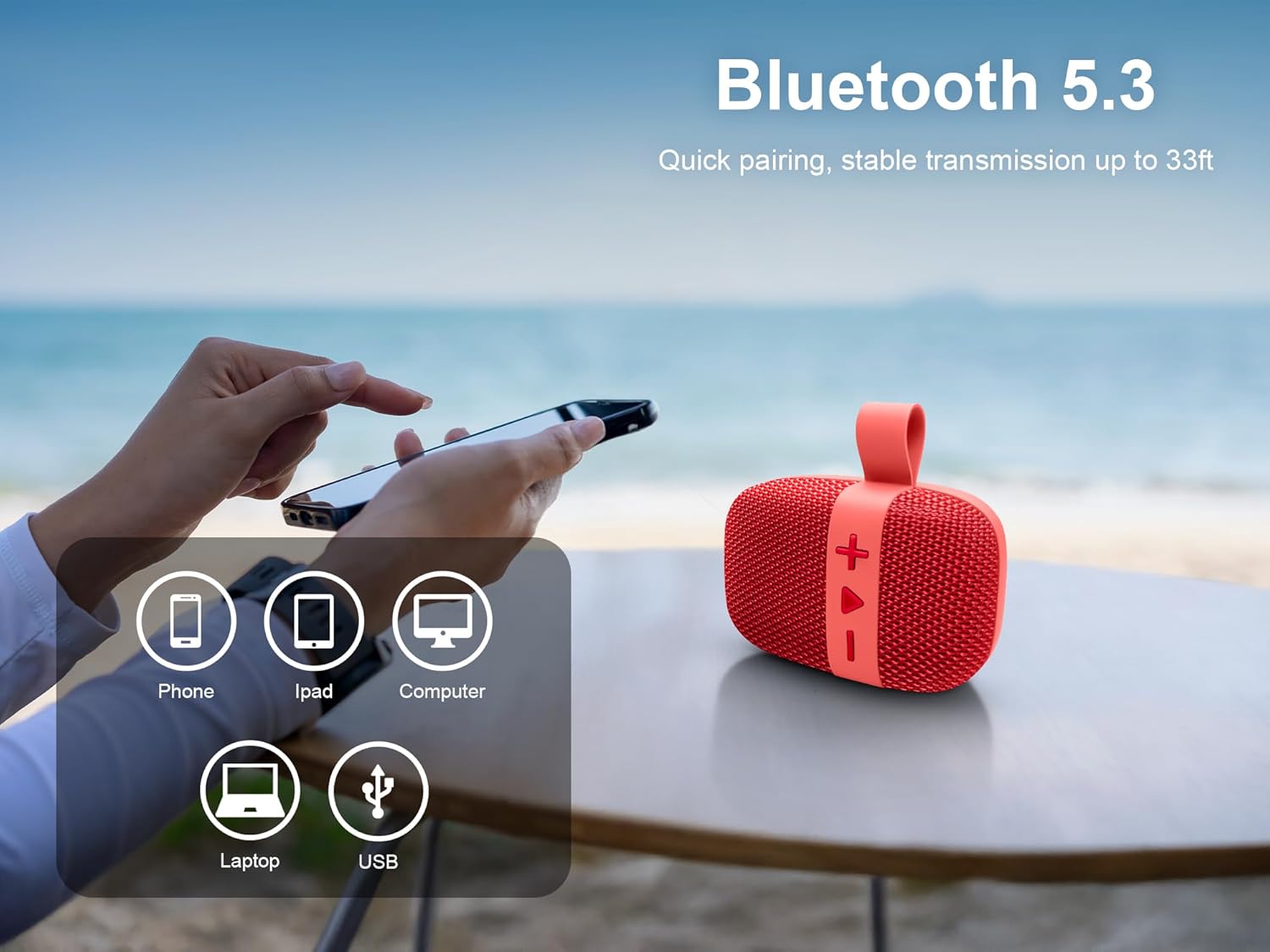 Fisher Portable Bluetooth Speaker, IPX5 Waterproof Speaker,10W Peak Power Bluetooth Stereo w HD Sound, 6H Playtime, BT 5.3, FM Radio, Wireless Electronic, for Pool, Beach, Home & Outdoor
