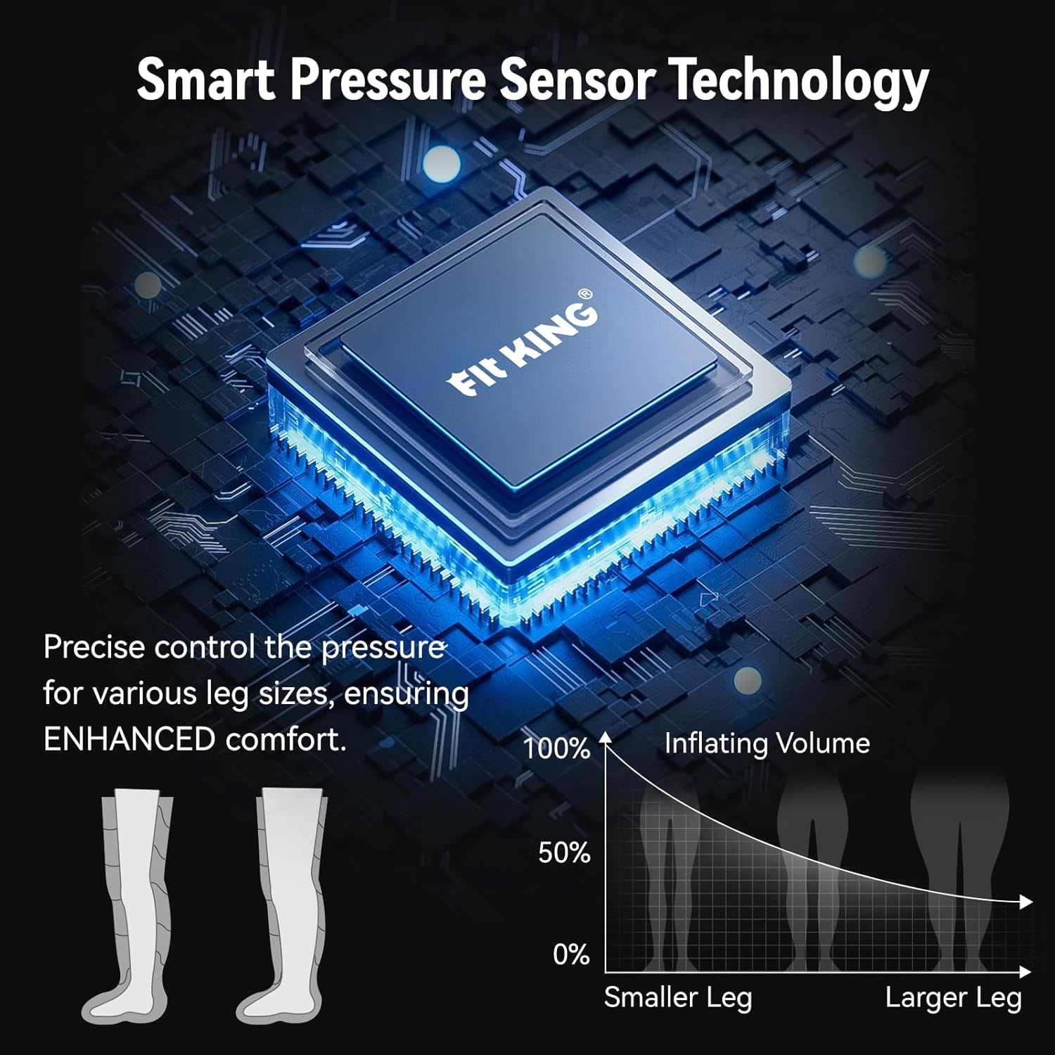Pressure Sensor Technology: Using the most recent pressure sensor technology, the FIT KING air compression device precisely controls the pressure for varied leg sizes, allowing users to experience MORE comfort.