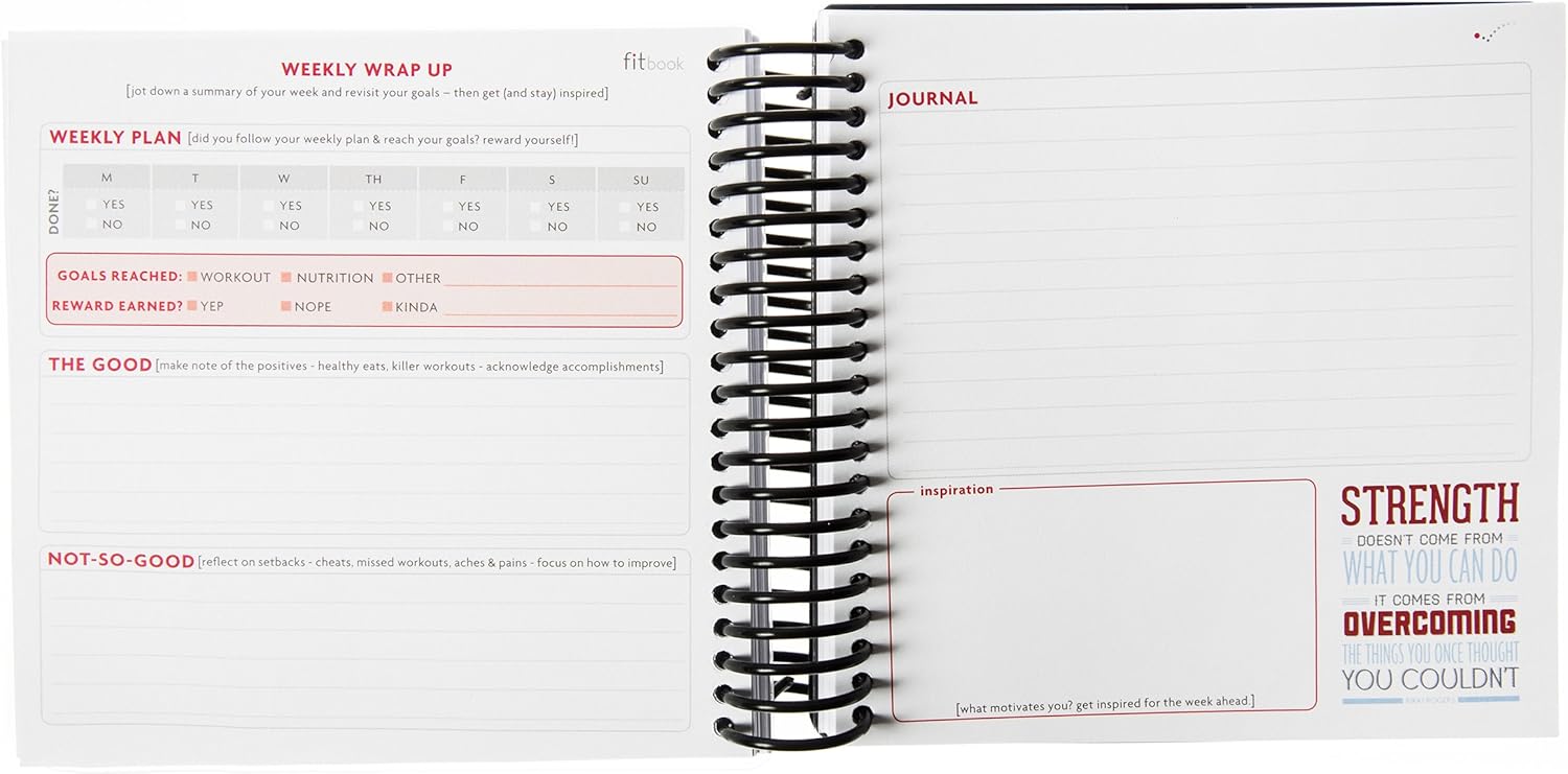 Fitbook Works: 76% Of Fitbookers Lose Weight In The First 12 Weeks. Whether Your Goals Are To Tone Up Or Slim Down, It’S Important To Write Down Goals. With Fitbook, You’Ll First Establish A Game Plan By Setting 12-Week Goals And Then Break Them Down Into Smaller, Weekly Goals. Need Help Setting Your 12-Week Goal? Download Our Fitbook+ Lite Goal-Setting App For Free To Help You Get To The “Why” Behind Your Fitness + Nutrition, Then Track Your Progress Toward Your Goal In Fitbook! Available For Iphone And Android Devices In The App Store. Each Week You’Ll Plan Workouts, Meals, And Rewards That Will Help Motivate You To Make Time In Your Busy Schedule And Stay On Track. Fitbook Also Tracks Your Daily Progress By Recording Workouts, Food Intake, And Other Health Related Stats. Finally, At The End Of Each Week You’Ll Reflect On Your Goals, Log Accomplishments, And Reward Yourself. Fitbook Is Structured Enough To Help You Reach Your Personal Goals, But Flexible Enough To Be Used With Any Exercise Program (P90X, Crossfit, Personal Training),Nutrition Plan (Weight Watchers, Paleo, Zone, Biggest Loser, Dash), Or Digital Fitness Device (Fitbit, Jawbone Up, Fuelband, Basis). Write It Down. Make It Happen. Get Fitbook: The Personalized, Flexible And Functional Line Of Fitness And Nutrition Journals That Offer A Unique System To Plan For Success, Track Progress, And Reach Your Goals.