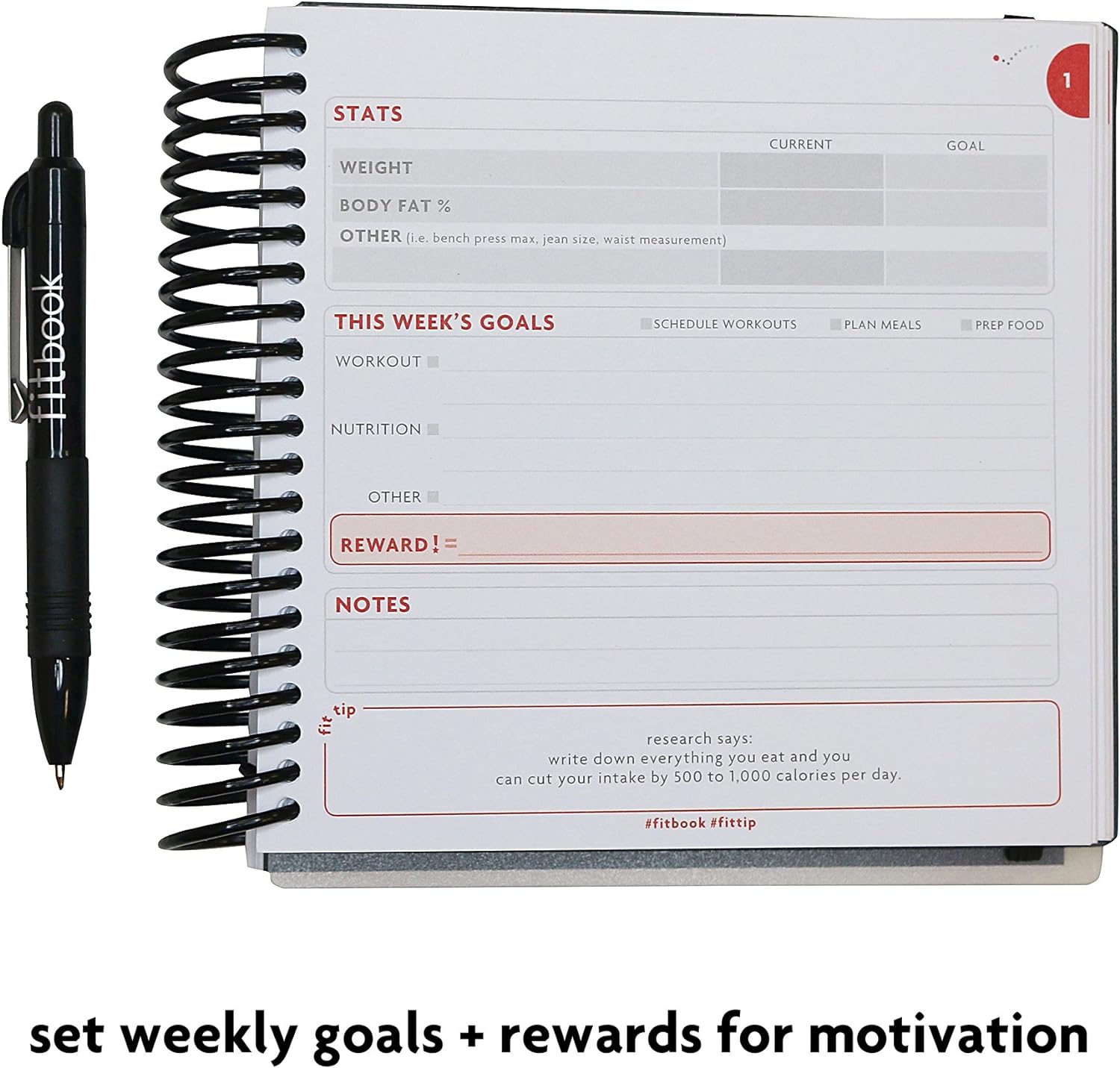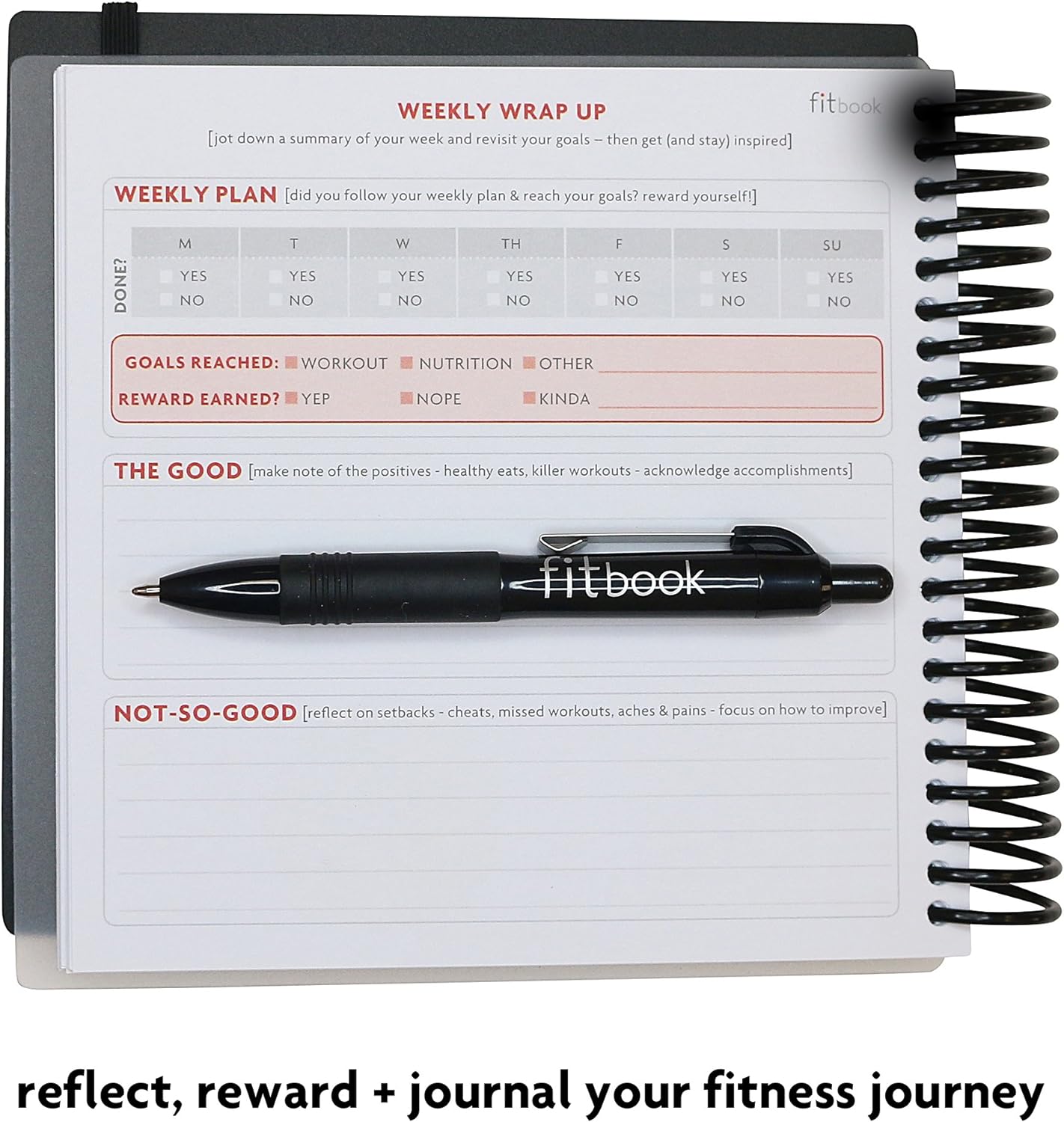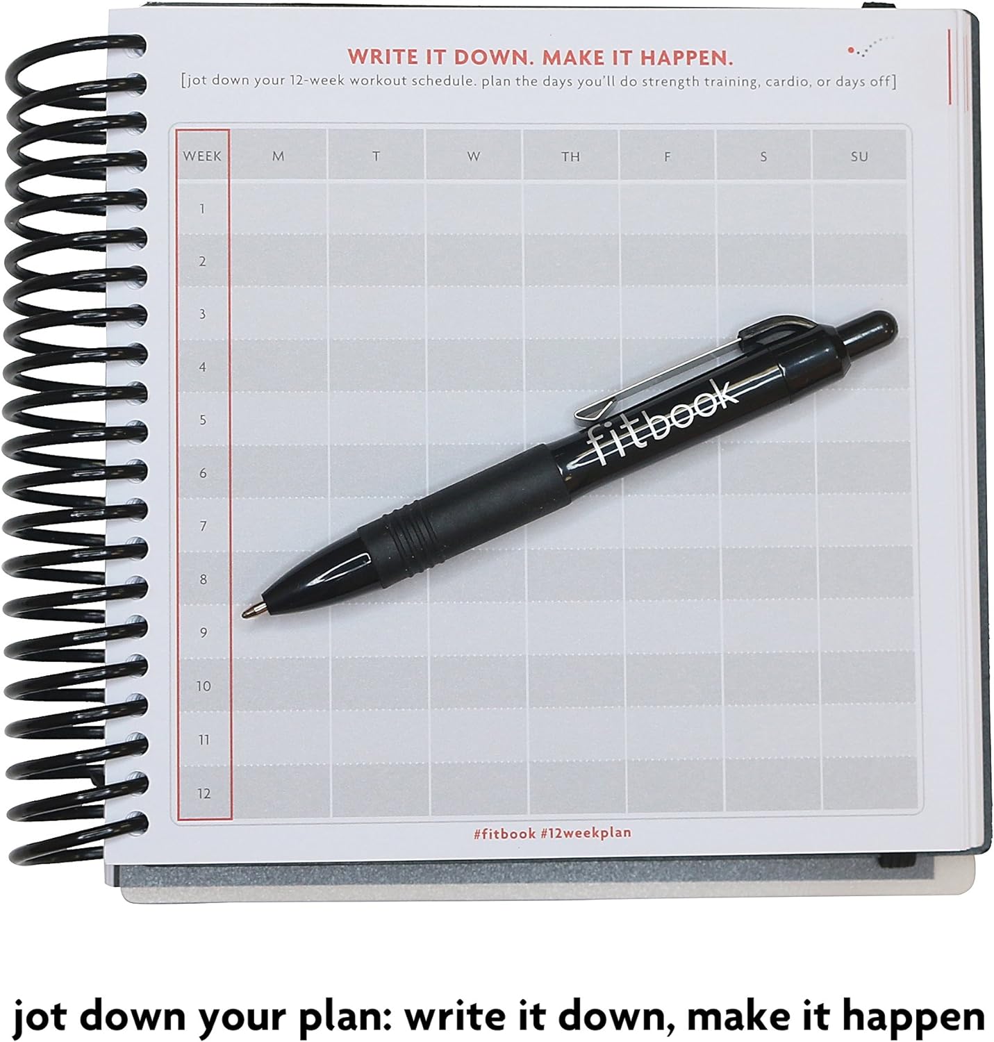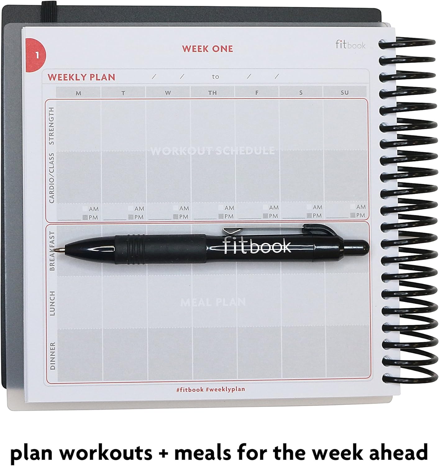Includes a FREE download for the fit book+ goal setting app to help you set a realistic, healthy 12-week goal and provide you with a printer-friendly download of your goals..Includes daily and weekly planning pages, plus space to log before and after measurements.