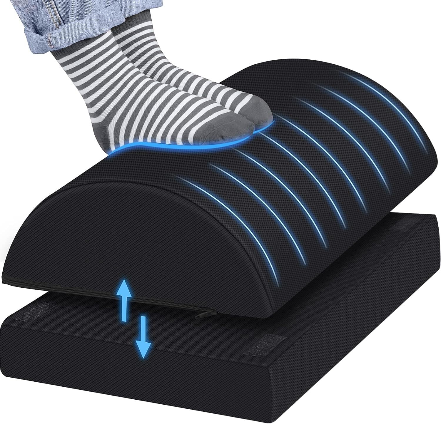 【Versatile Design】Use it under your desk for ergonomic leg support, under your knees for extra comfort, or flip it into a rocking foot rest for relaxation. This compact, adaptable foot rest brings comfort wherever you need it