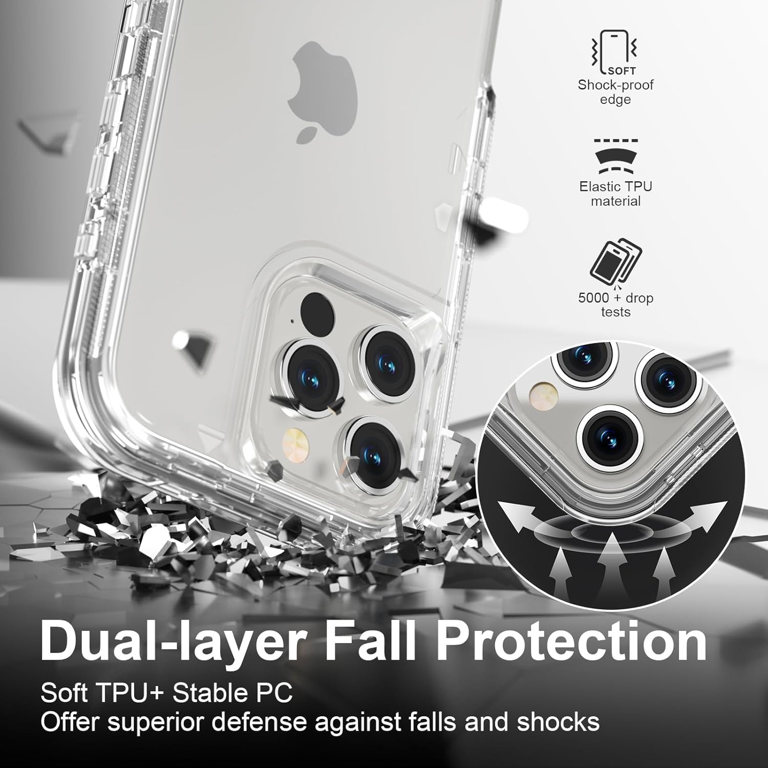 【Dual-Layer Rugged Protection】: The dual layer design combines a sturdy durable clear PC inner shell with a soft TPU outer layer to provide robust protection against drops from up to 6.5 feet. The dust cover for the charging port helps keep your phone clean and dust-free, while the four corners effectively absorb shocks and prevent scratches